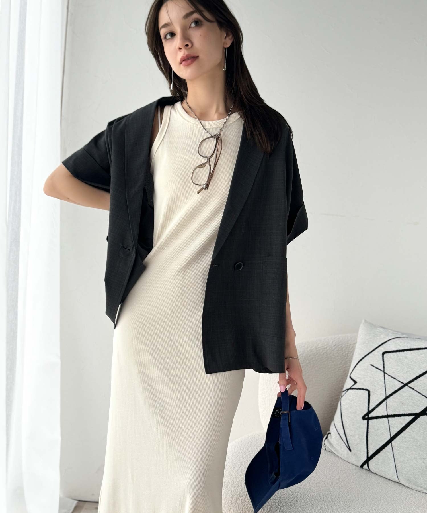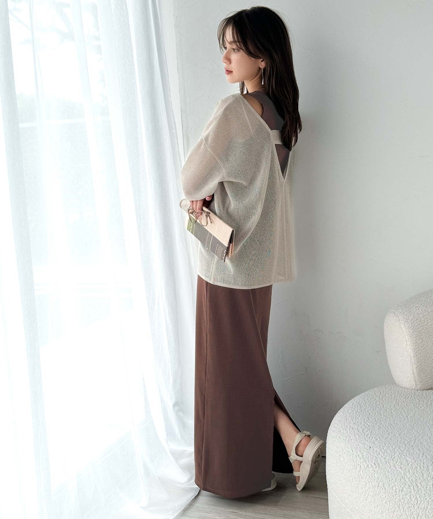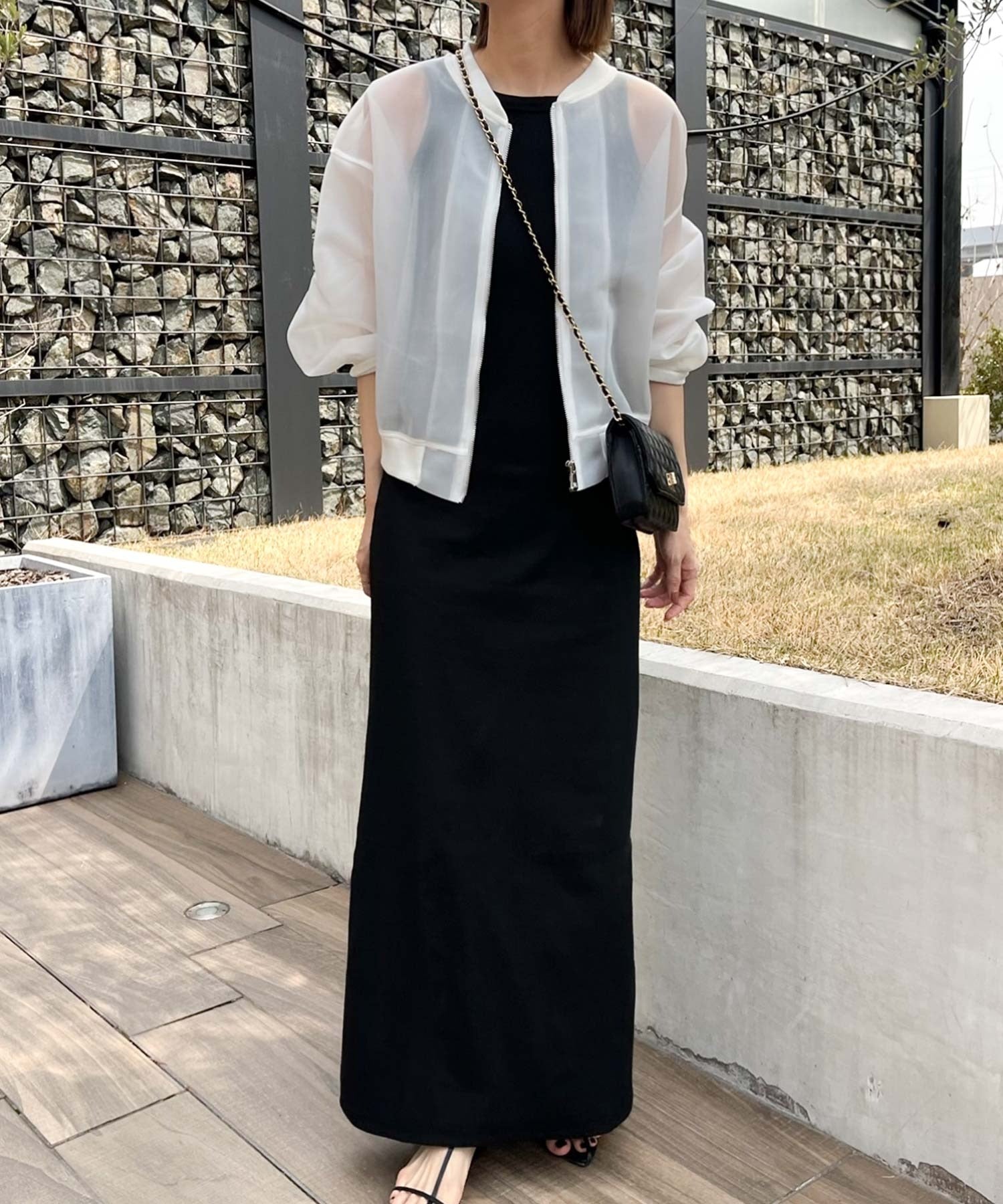 サマージャケットやシアーブラウスを羽織れば、洗練された印象をプラスできますよ◎