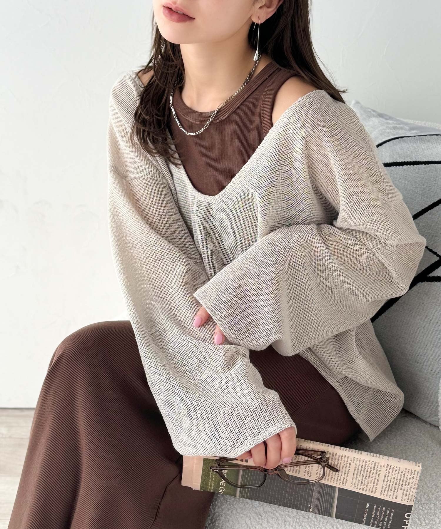 また、コラボアイテムのメッシュプルオーバーと重ねれば、気になるヒップラインをカバーしつつこなれ感アップ。
