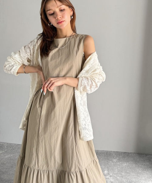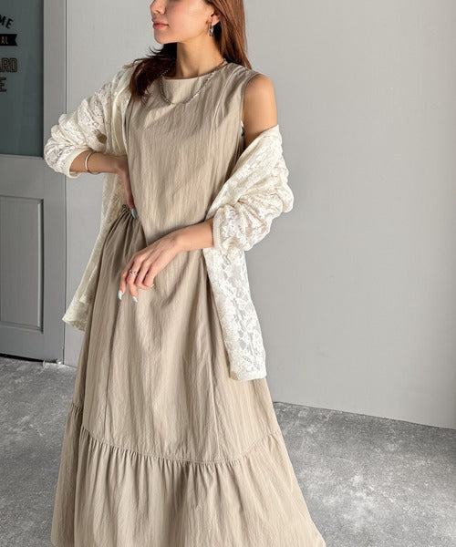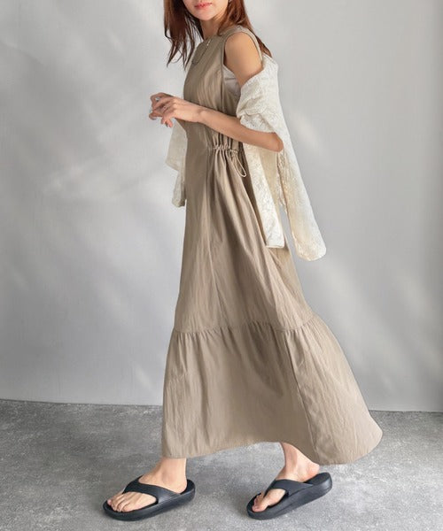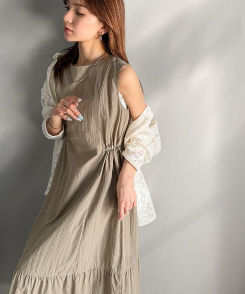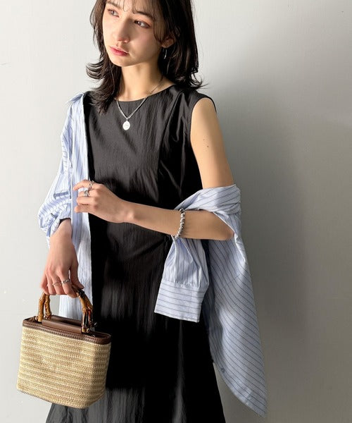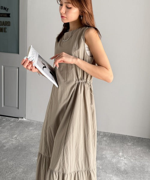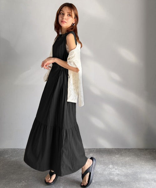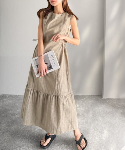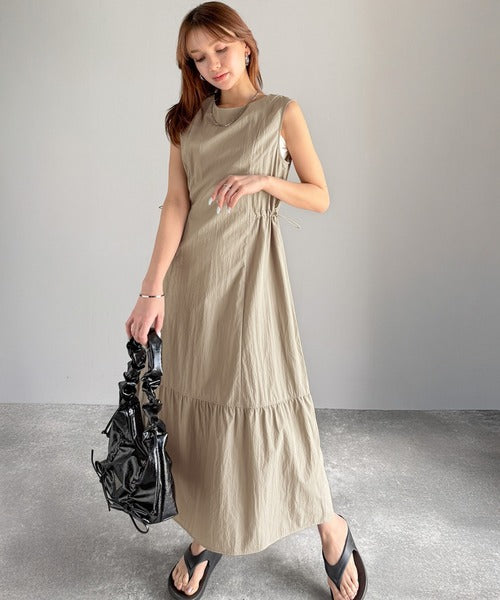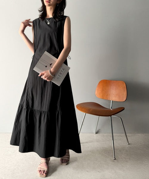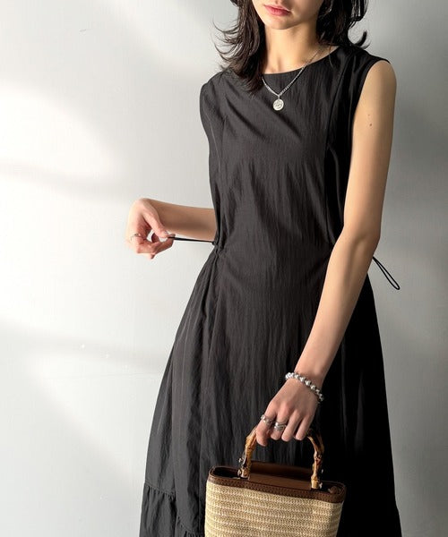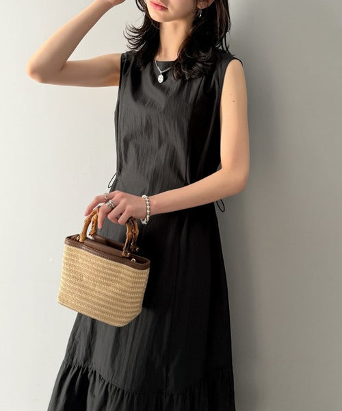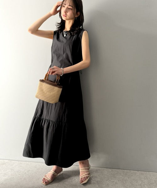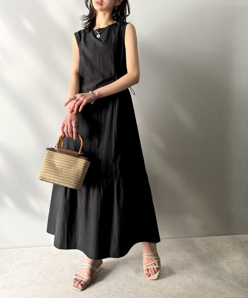 軽やかな美シルエット。軽量ストレッチサイドドロストノースリーブ裾切り替えワンピース(Aライン) ce1020267