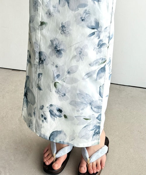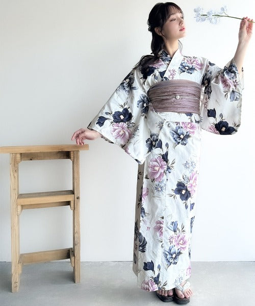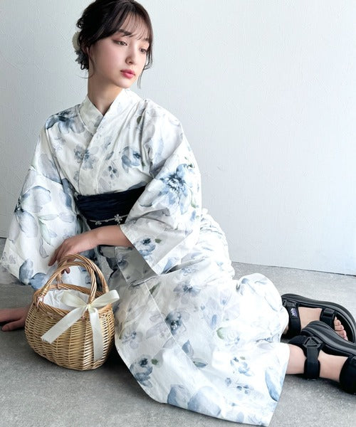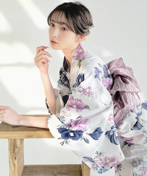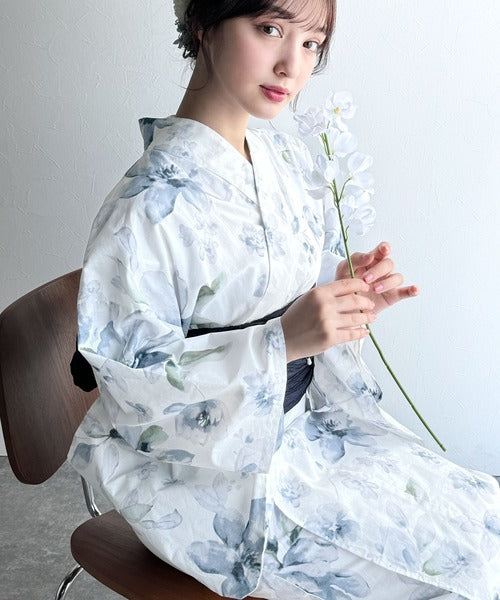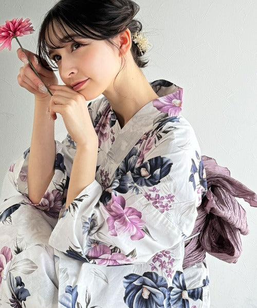 白地に大人の女性らしい花柄が施された浴衣2点セット。