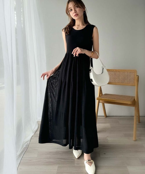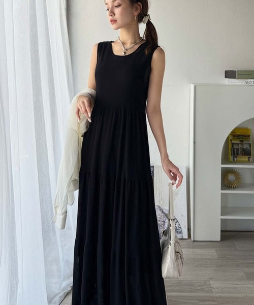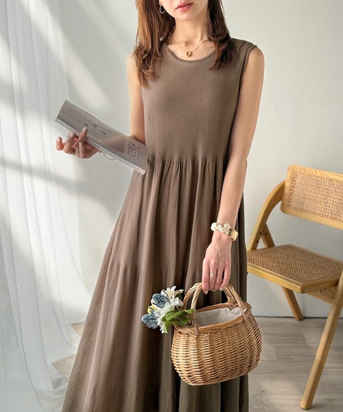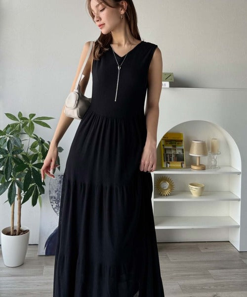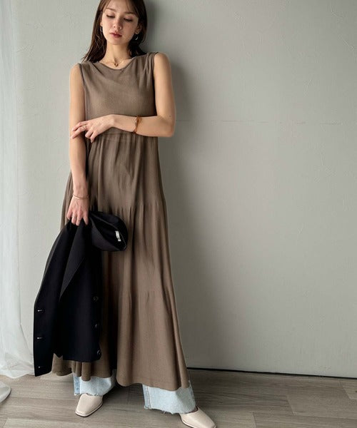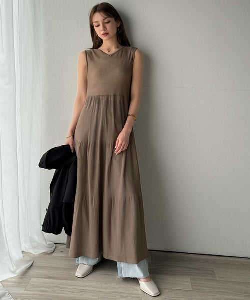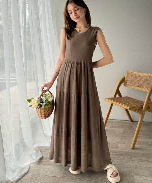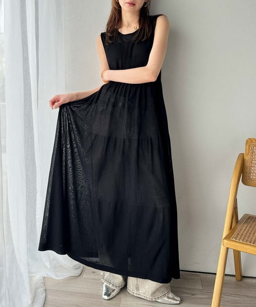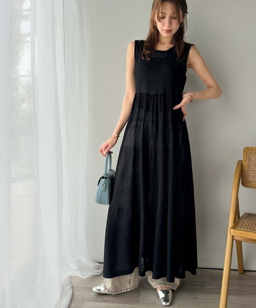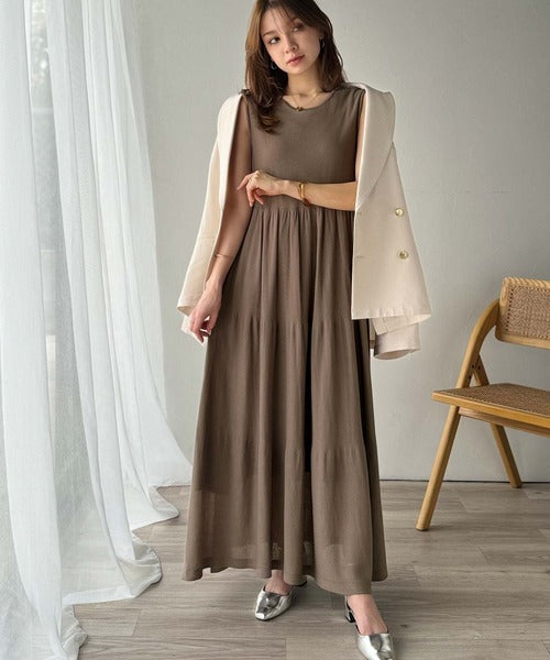 ふんわり透け感で大人フェミニン。前後2WAY3段シアーティアードニットワンピース ce1260332