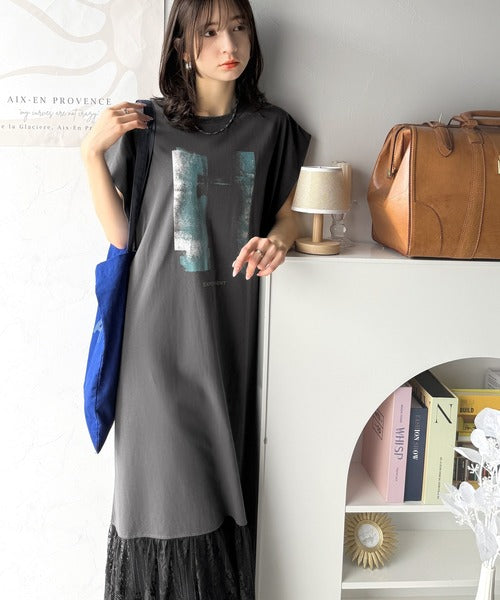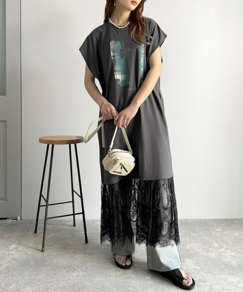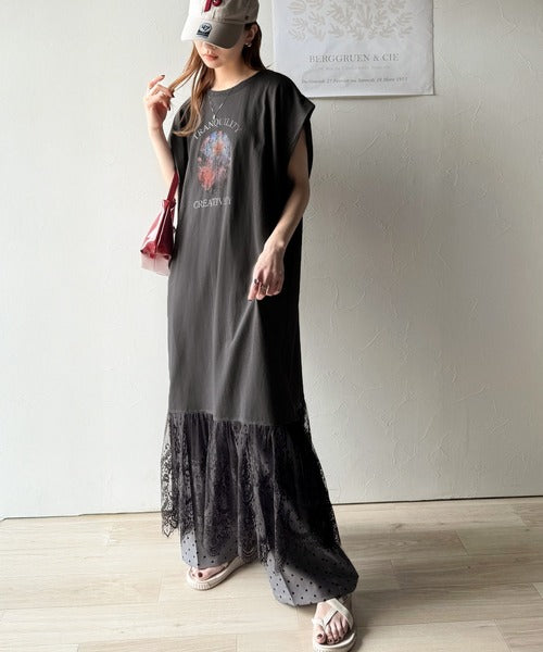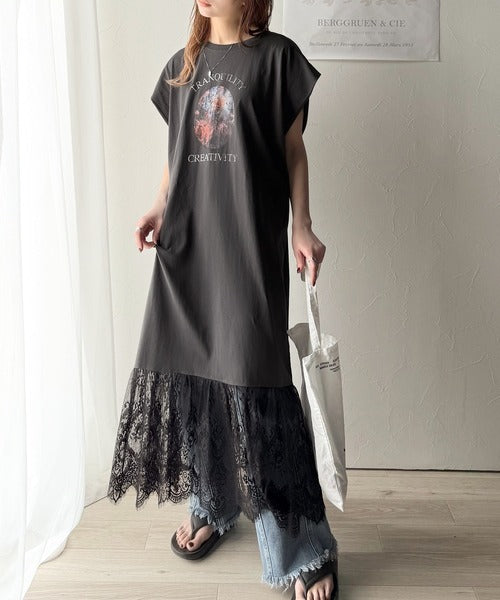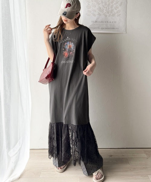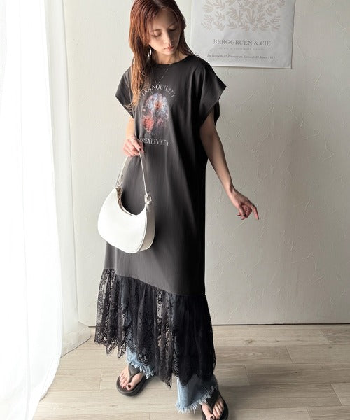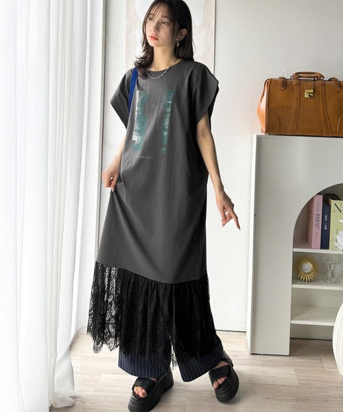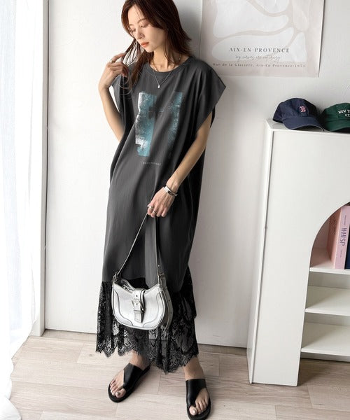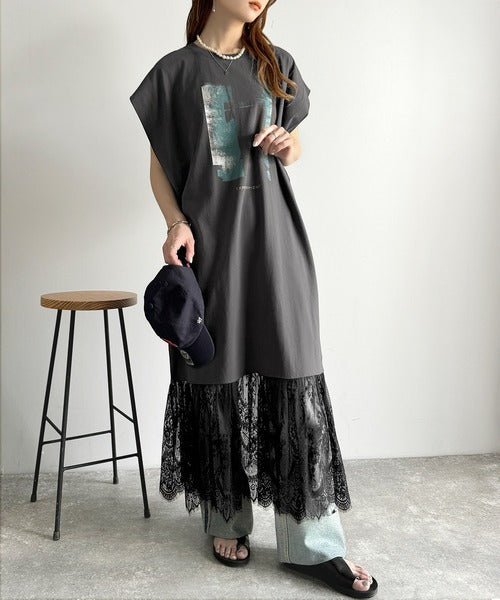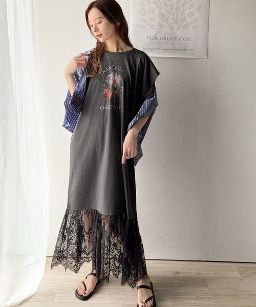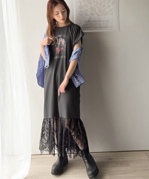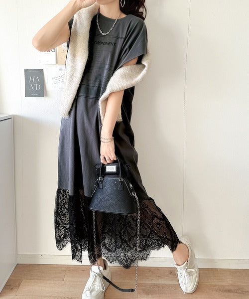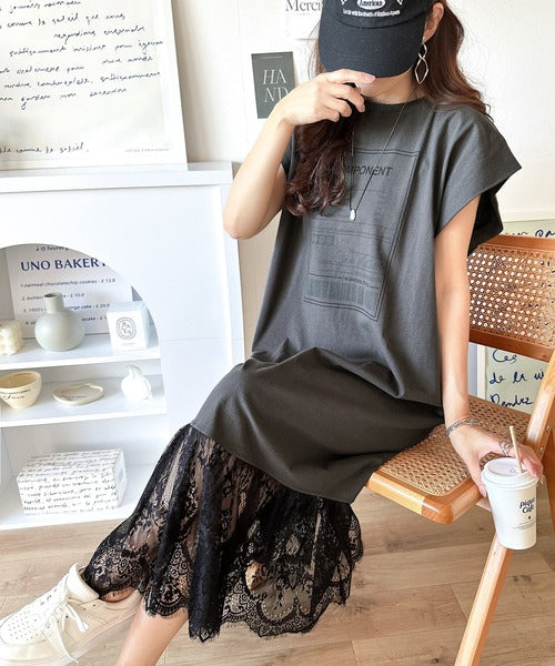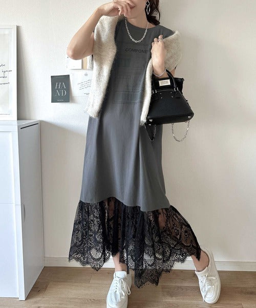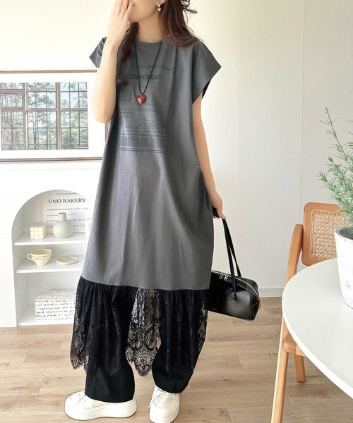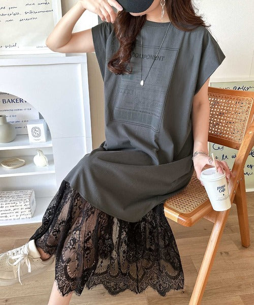 レイヤード風で魅せる大人のこなれ感。レースコンビロックTワンピース(半袖) ce1260363