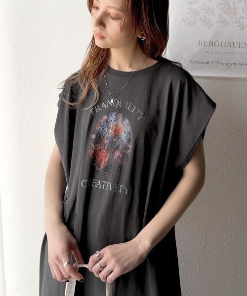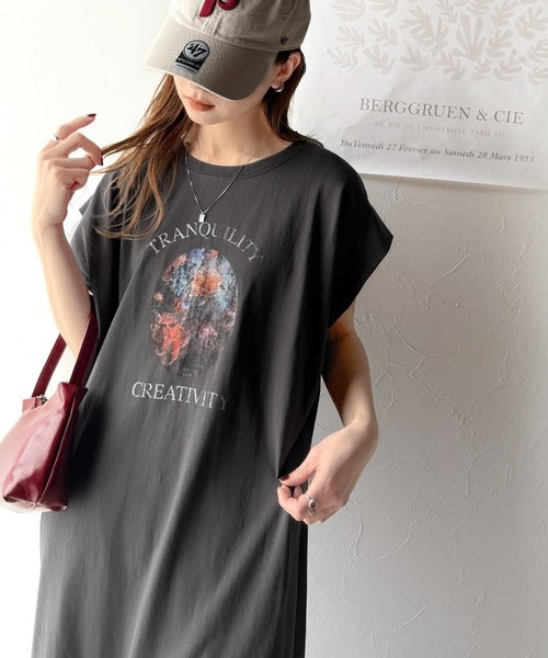 フレンチスリーブがさり気なく腕回りのカバーも叶え、ノースリーブが苦手な方にもおすすめ!