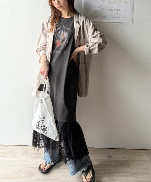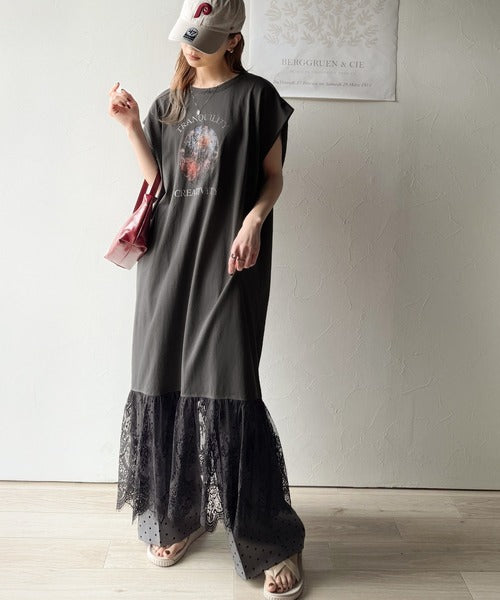 かっこいいロックT風デザインなのに裾レースが歩くたびにふんわり揺れ、
