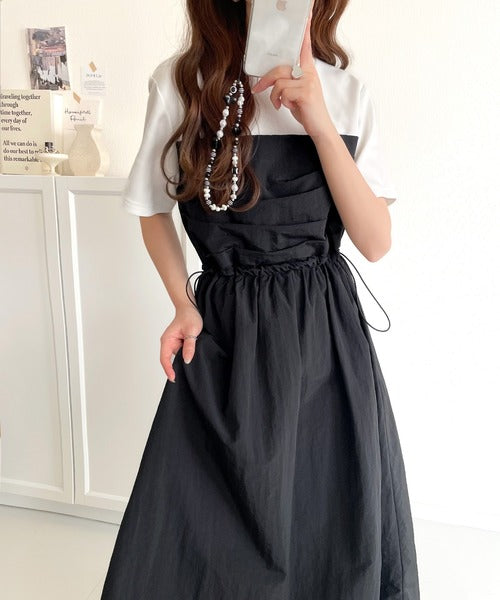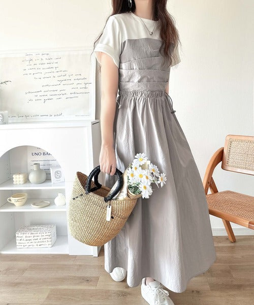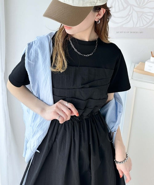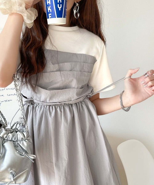 ・Tシャツとビスチェワンピースをレイヤードしたようなデザイン
