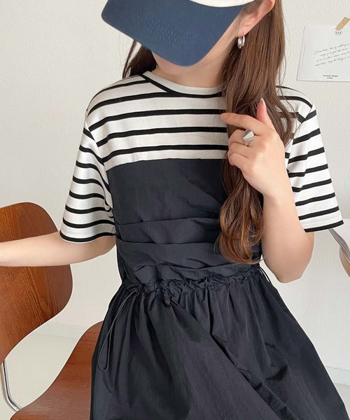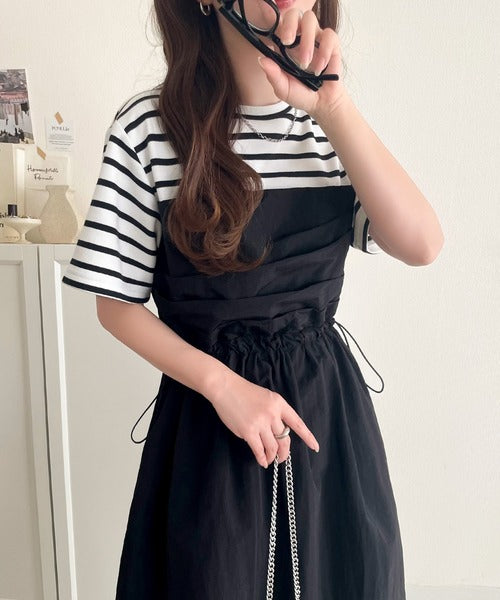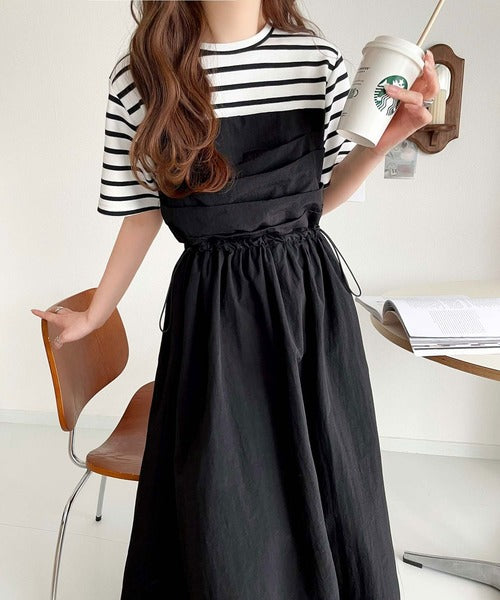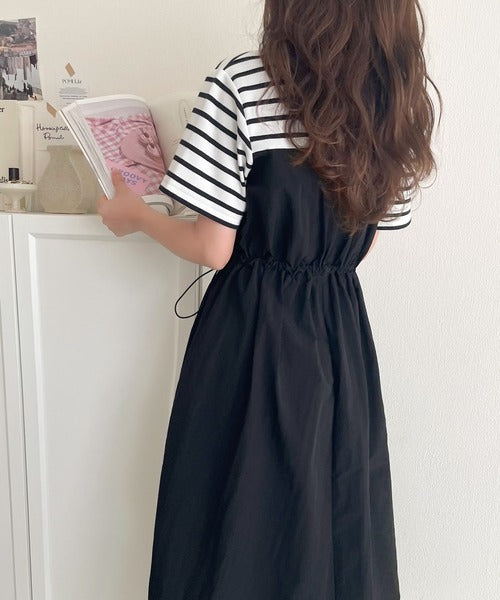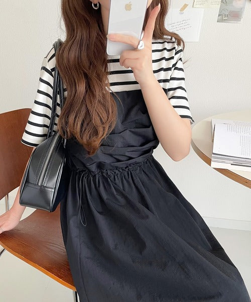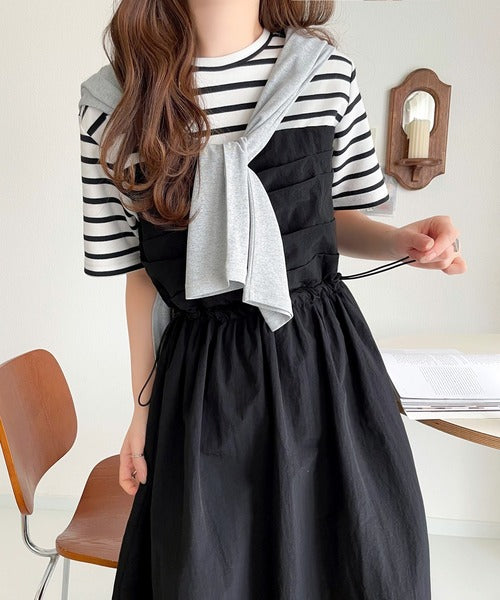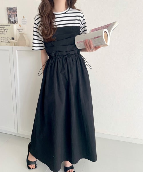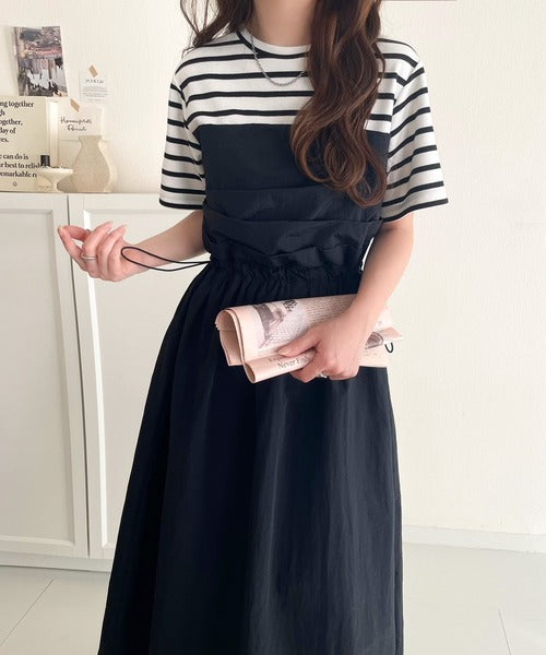 1枚で主役級。脇ドロストビスチェドッキングワンピース(無地&ボーダー柄) ce1260411