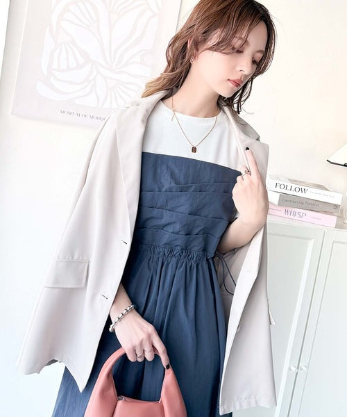肌寒い日にはスプリングーコートやジレを羽織れば、洗練された印象をプラスできますよ◎