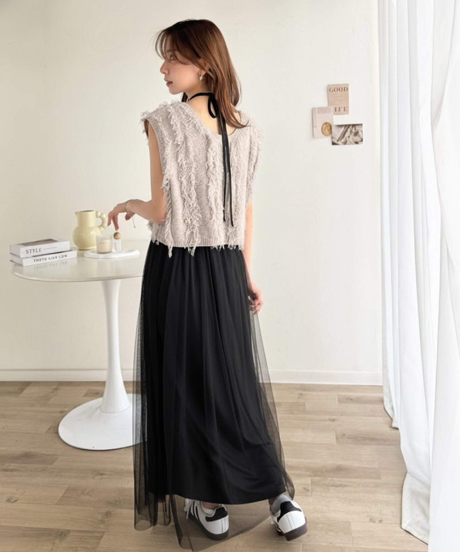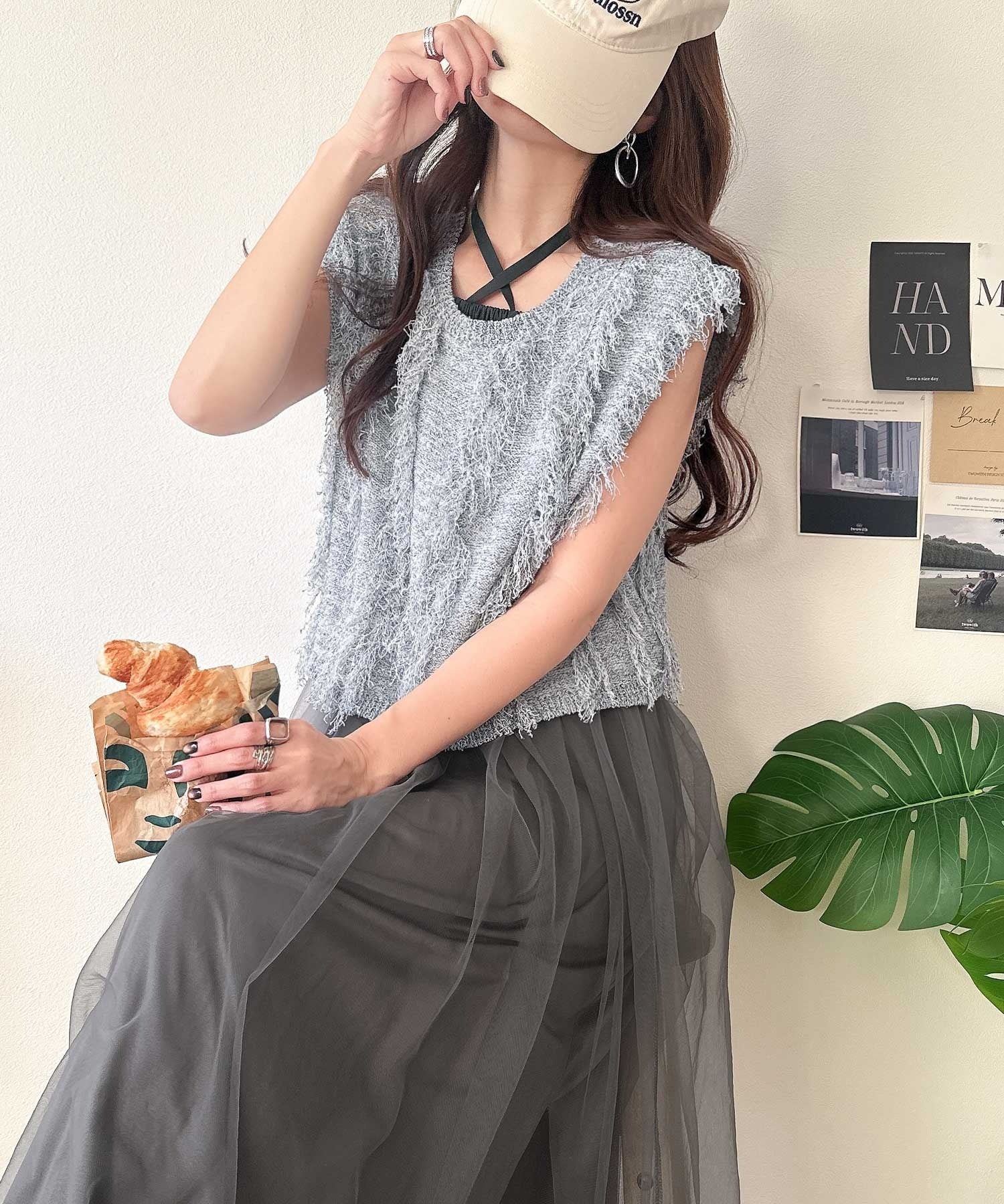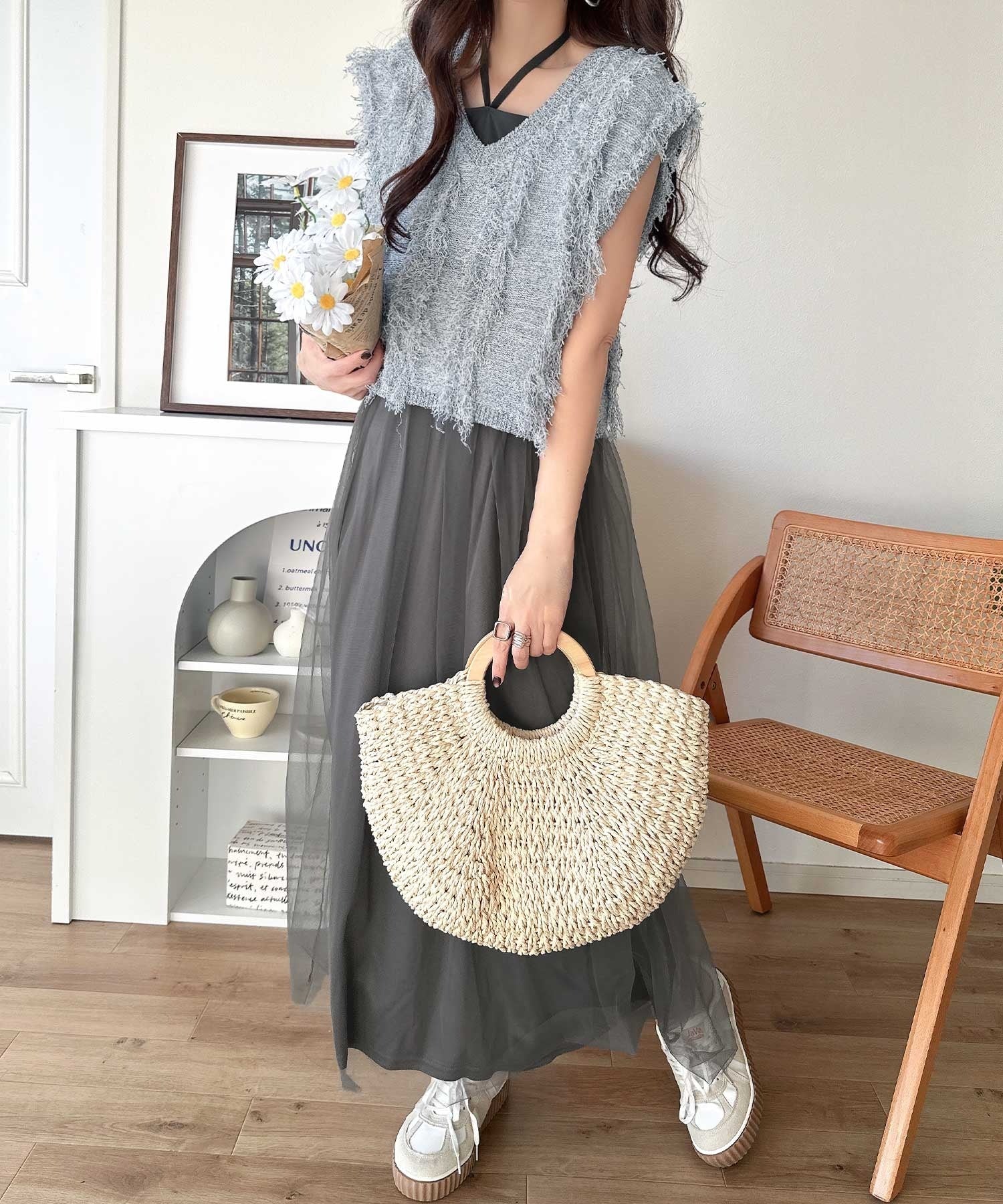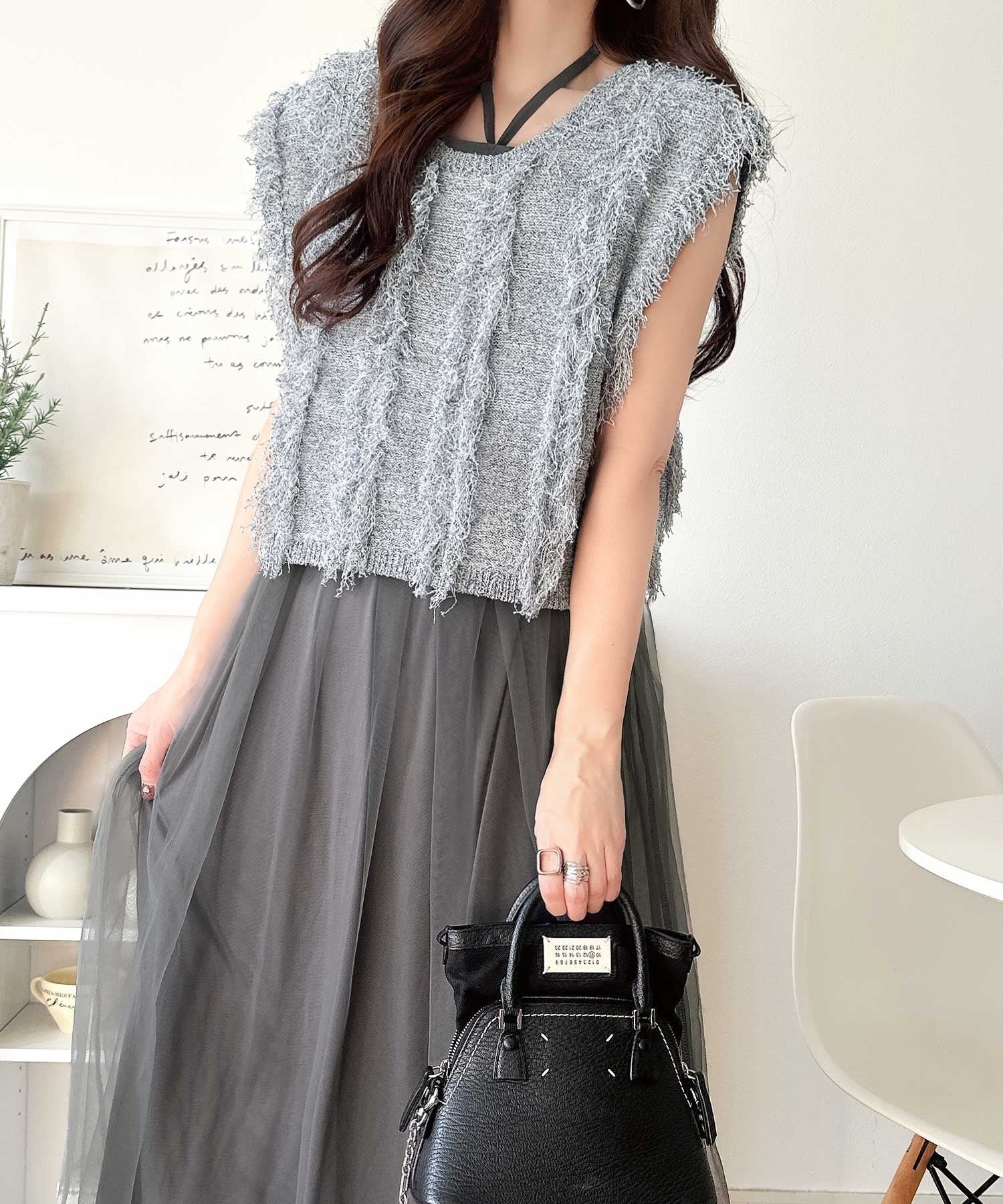 フリンジニット×フレアチュールの華やかセットアイテム。