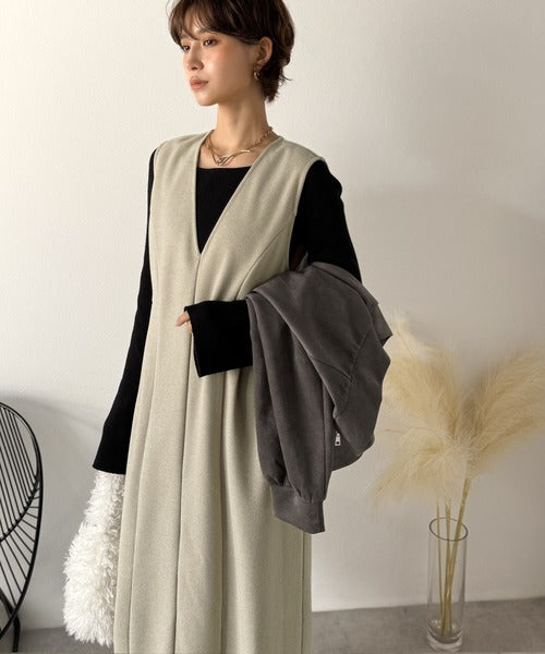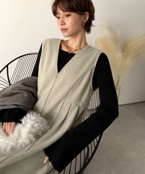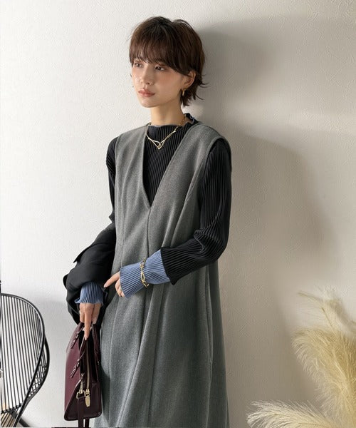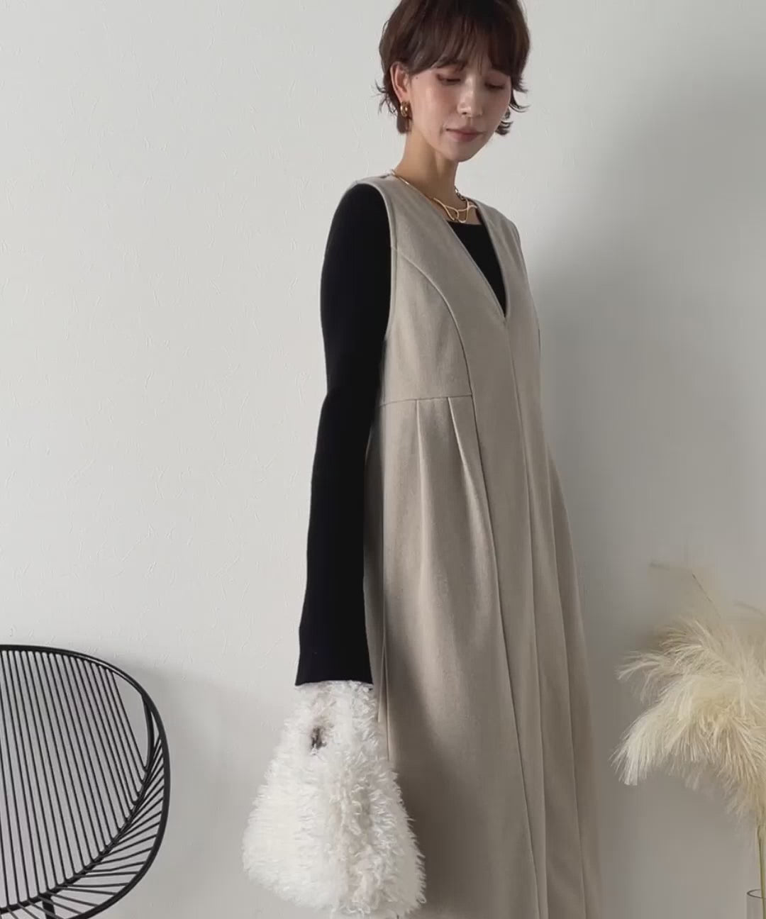 【Classical Evon】一枚で決まる、凛とした美しさ。Vネックウエストタックワンピース(ロング丈) ev1110146