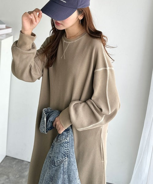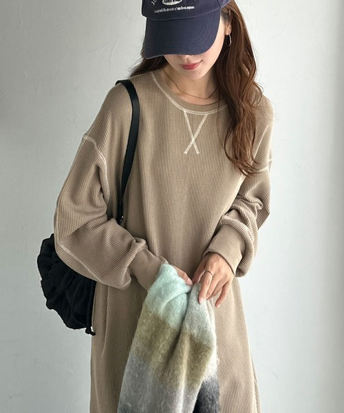 ラフな着心地を楽しめる大人カジュアルなワッフルワンピース。