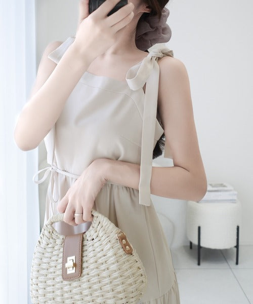 大人の甘さを叶える肩リボンが特徴的なワンピース。