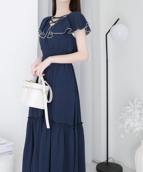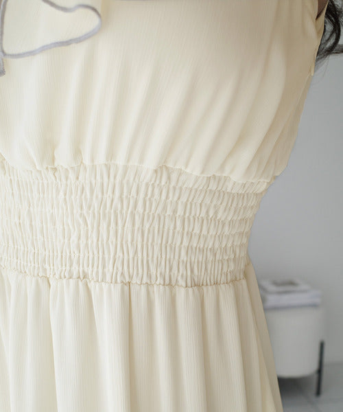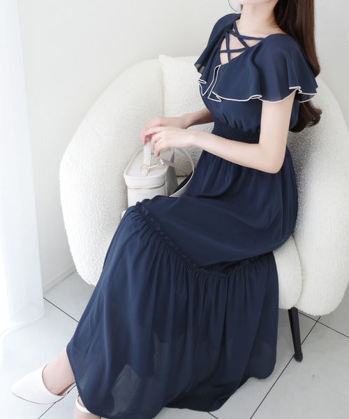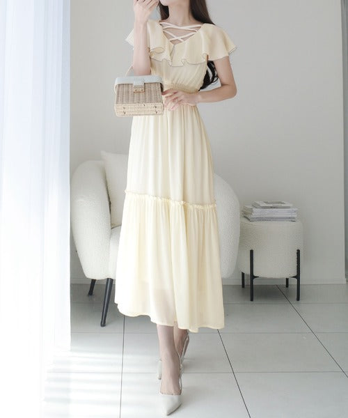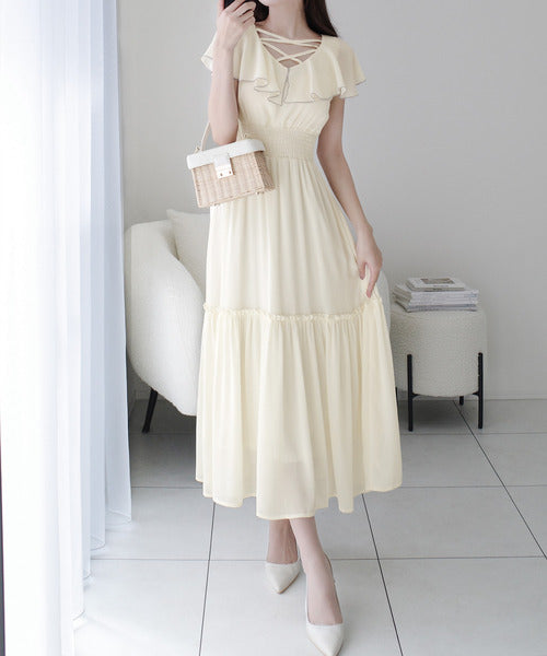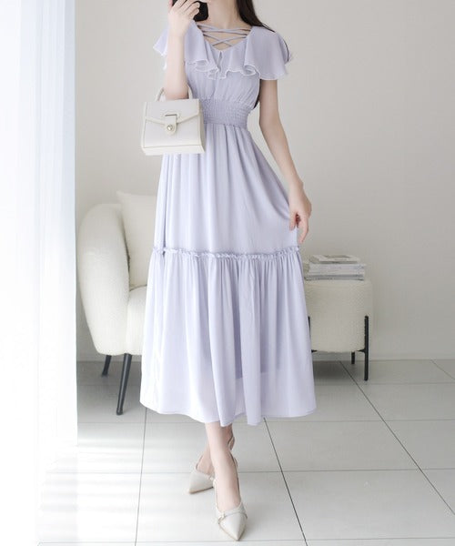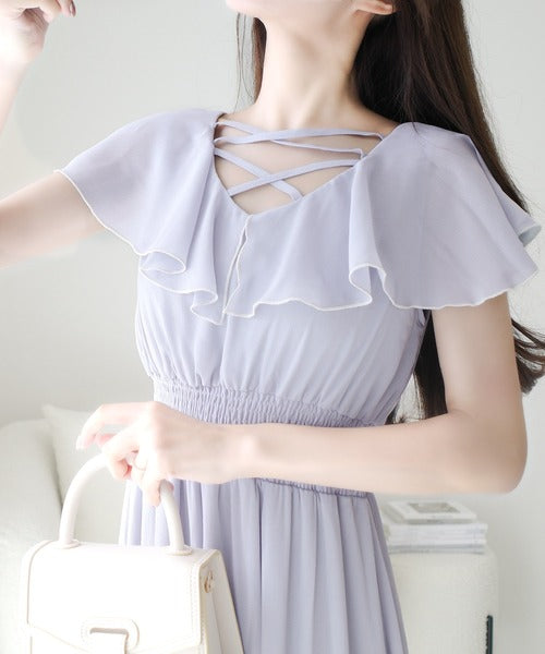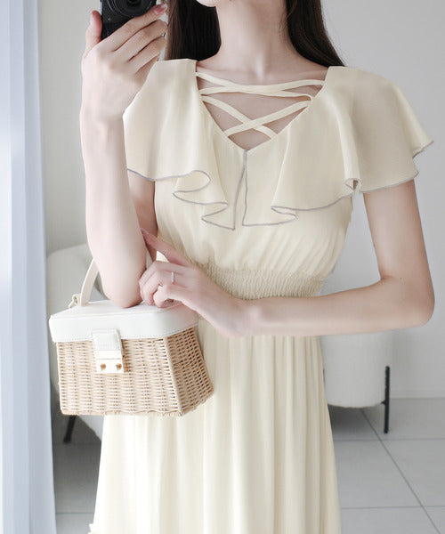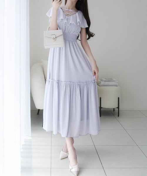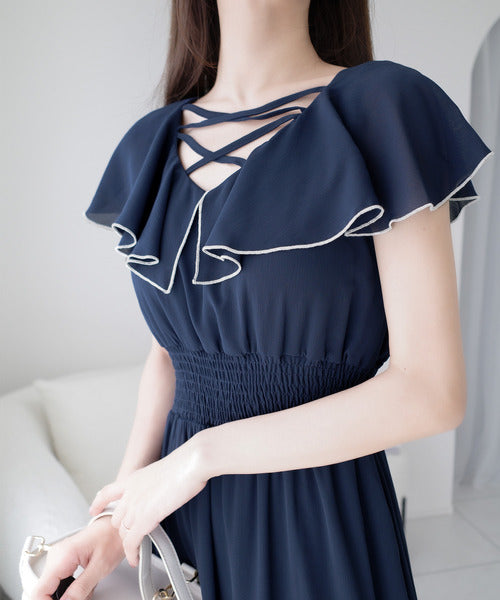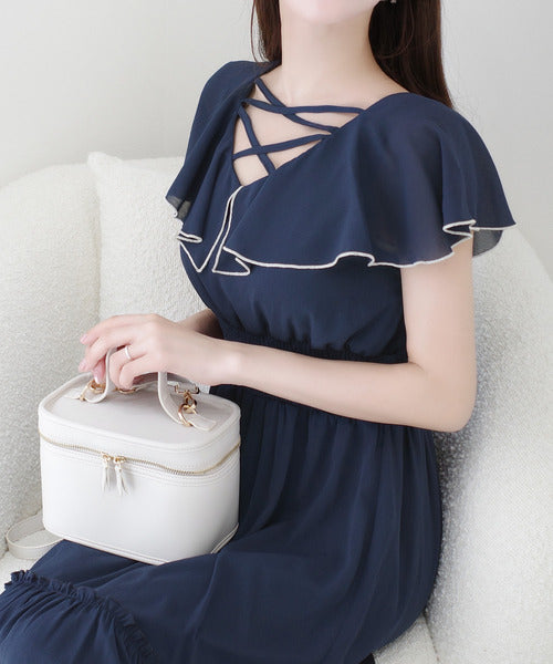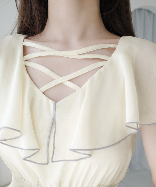 【mily bilet】今季上品に大活躍♪クロスデザイン楊柳使いフリル襟ワンピース mi1139081