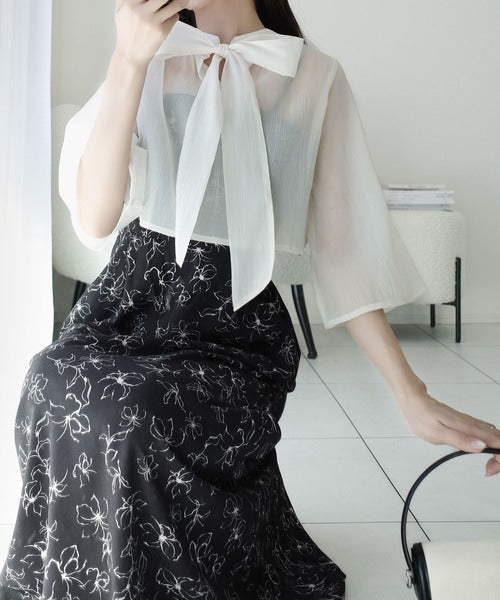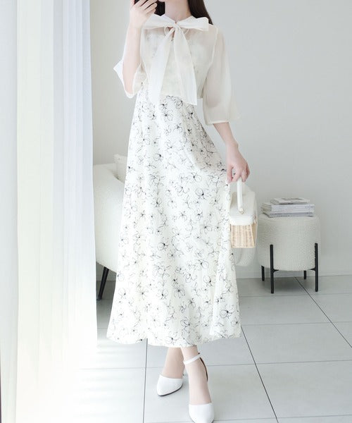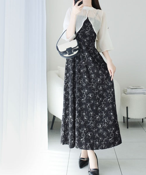 【mily bilet】透け感コーデ でつくる、映えガーリー。前後2WAY花柄シアーボレロセットアップキャミワンピース mi1139082