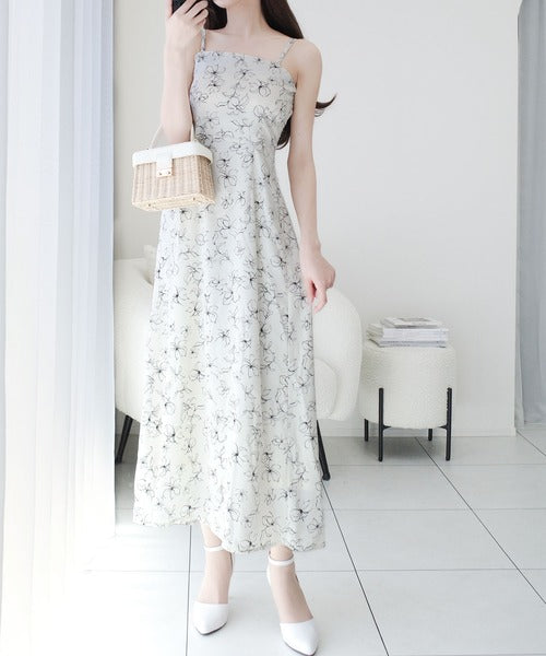 ガーリー好きにぴったりな線花柄キャミワンピに、