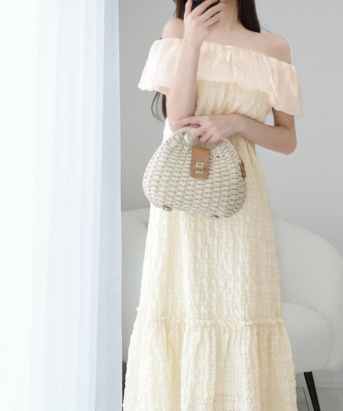 【mily bilet】甘さと気品を一枚に。ビッグオーガンジーケープ付きオフショル2WAYシアーエンボスワンピース mi1139087