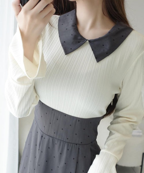 柔らかいリブ生地と透け感のあるドット生地。