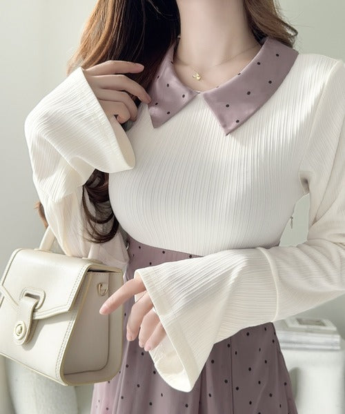 ドット柄とフレア袖で可愛さと上品さを両立♪
