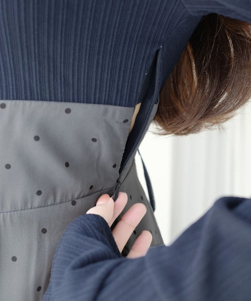 清楚見えする切り替え配色のドッキングワンピース。