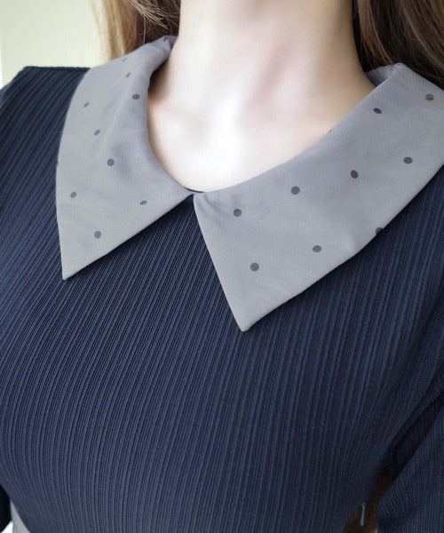 柔らかいリブと透け感のあるドット柄を合わせたワンピース。