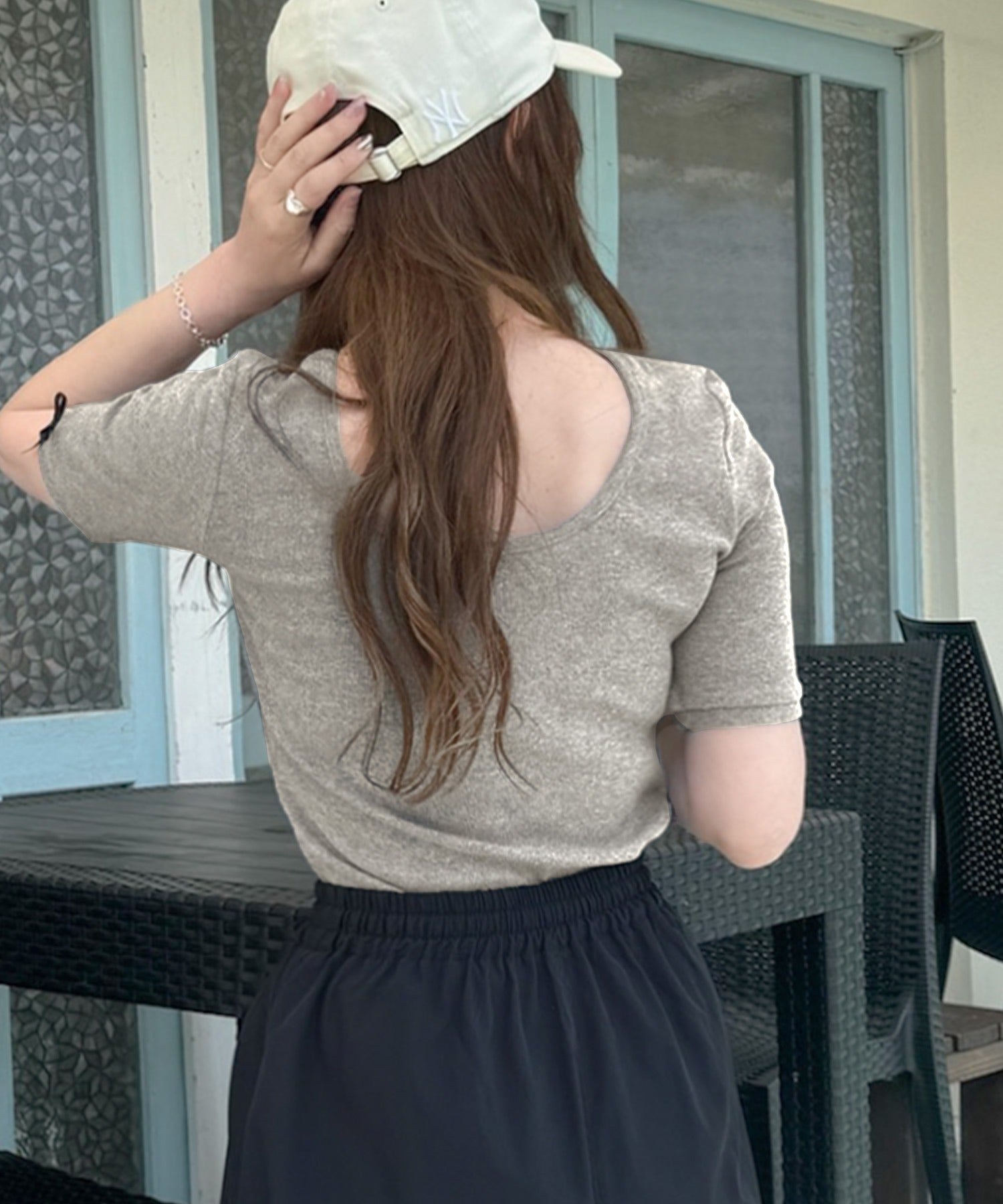 大人の女性にぴったりな、程よい背中開きのデザインが魅力のリブトップス。