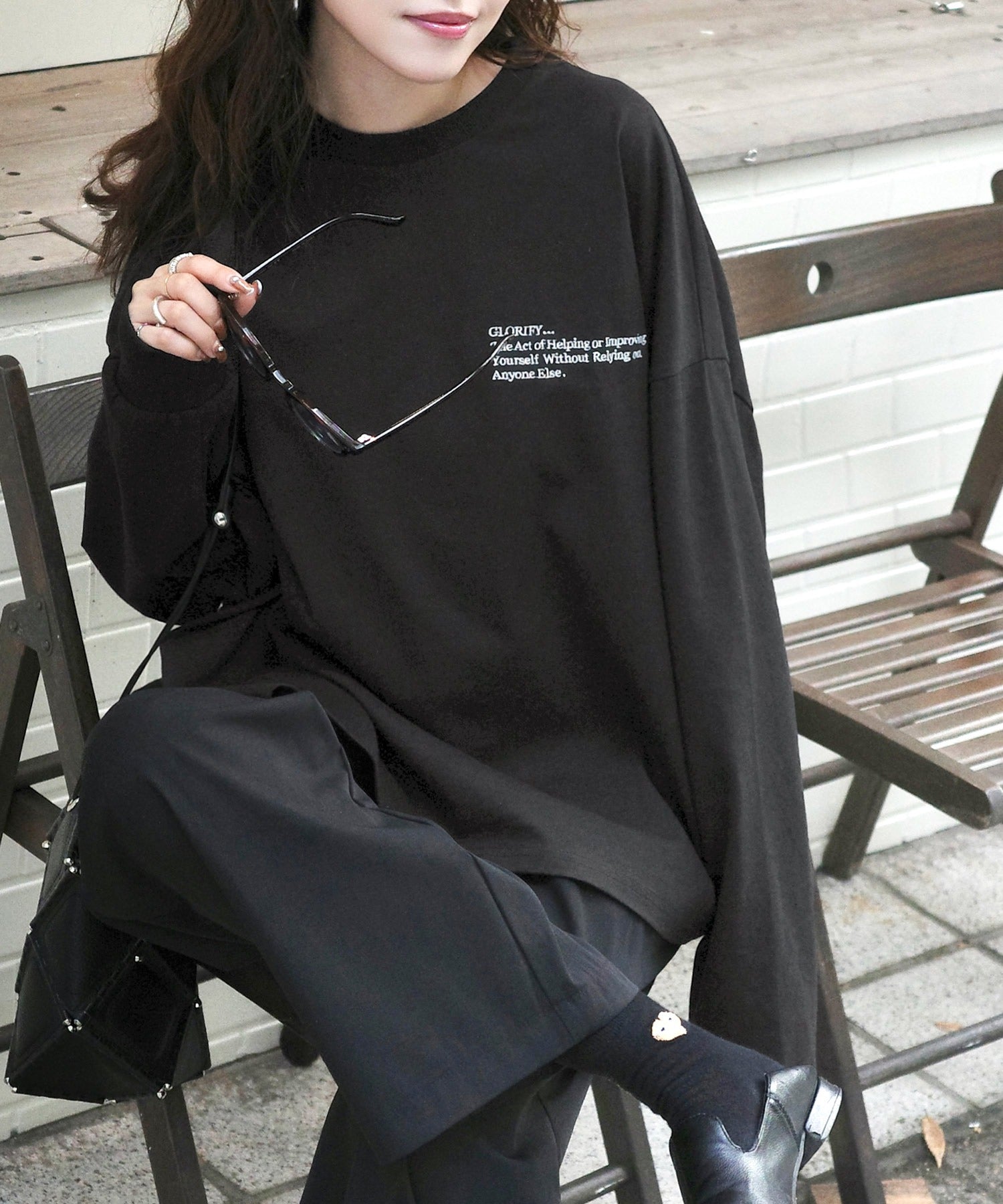 ドロップショルダーでリラクシーに着られるビッグシルエットのロンT。