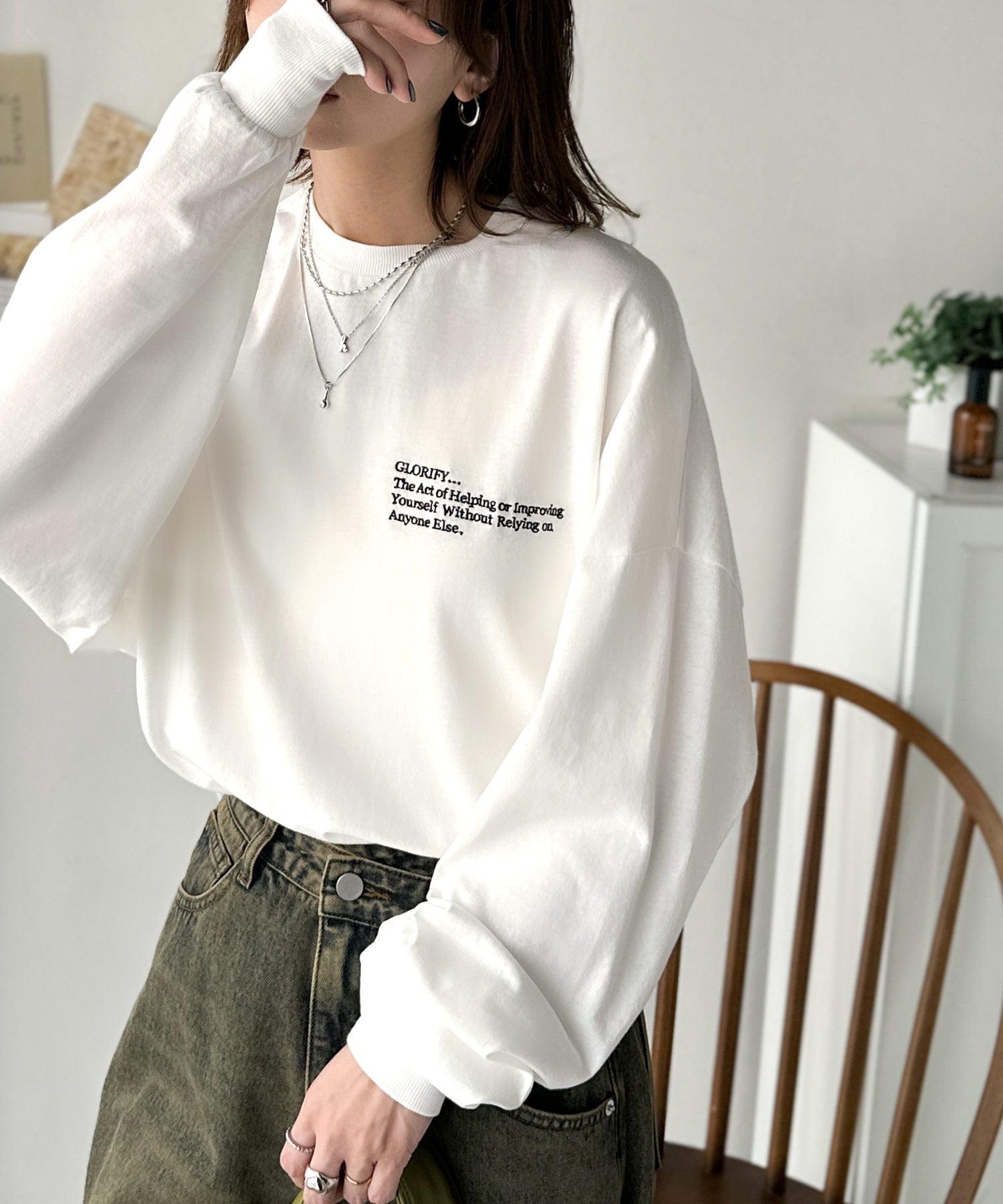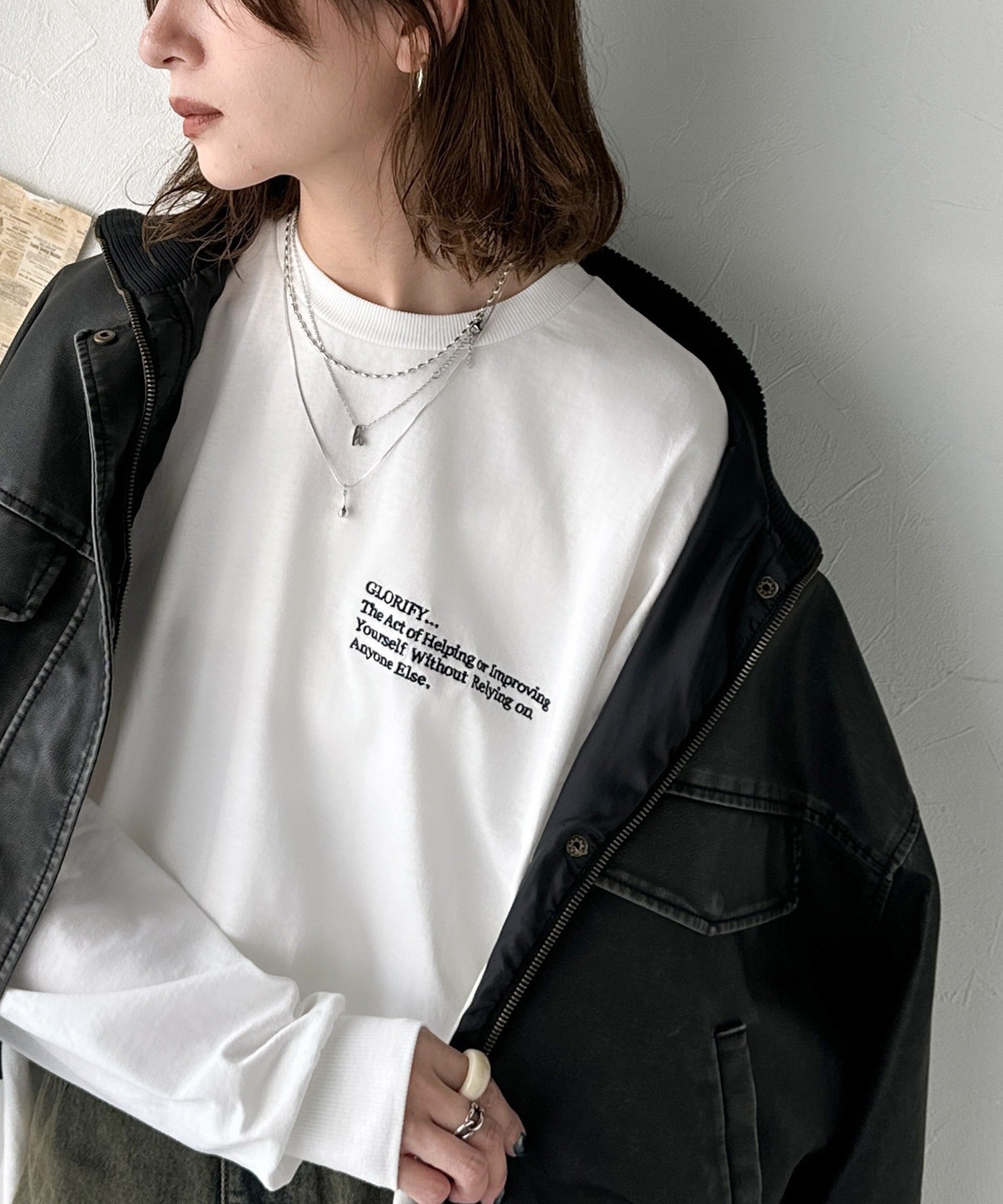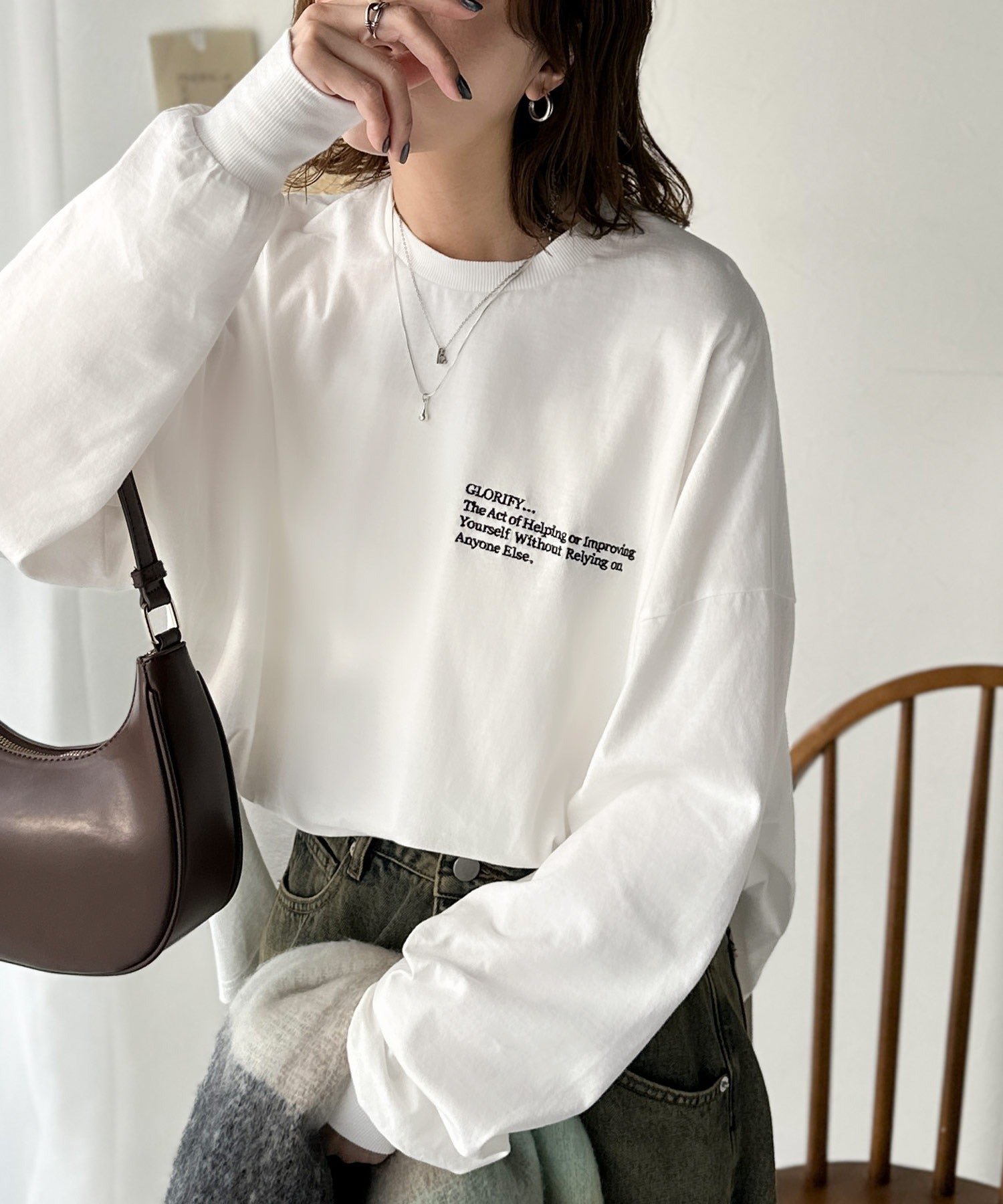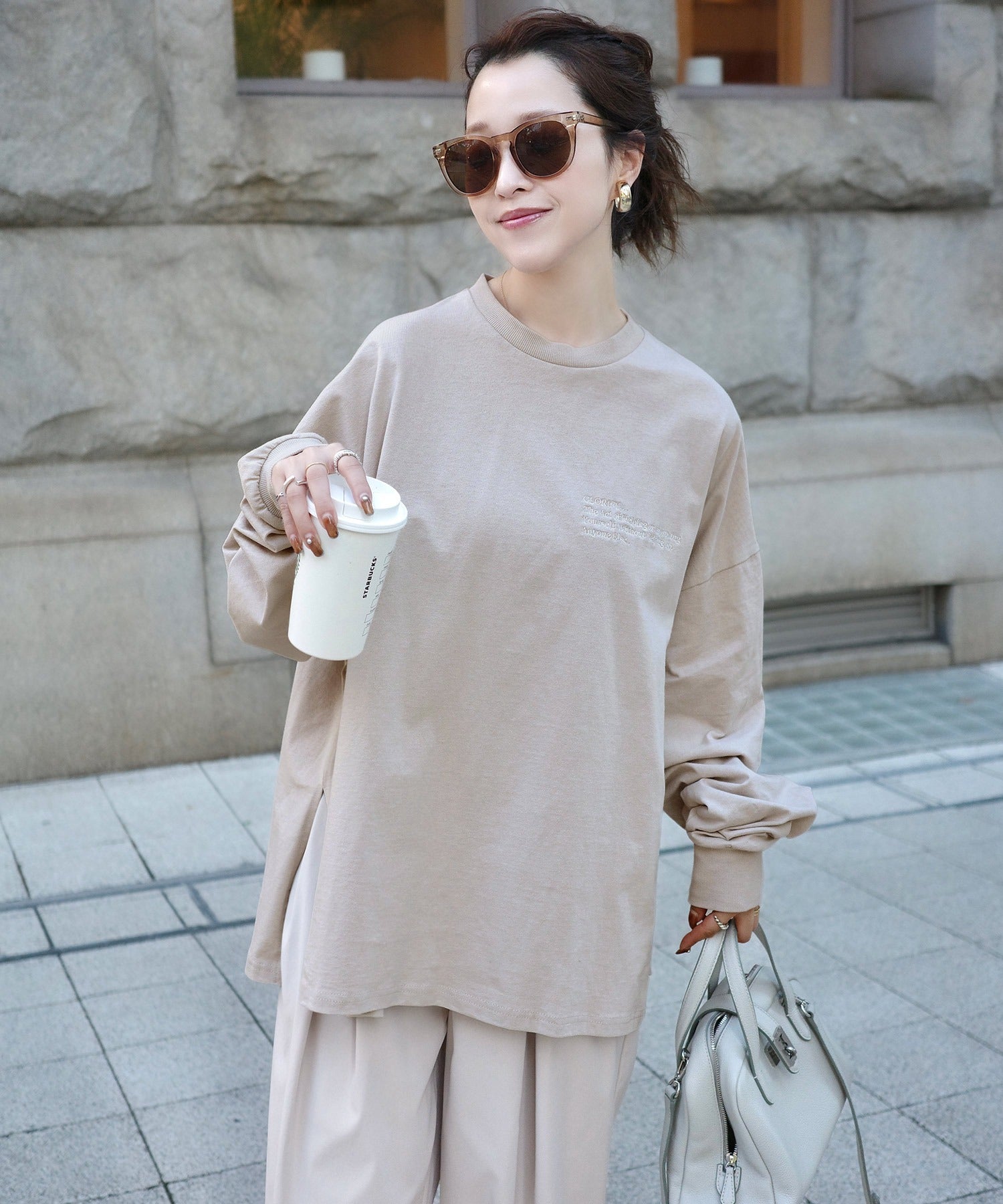 《marina×クラシカルエルフコラボ》ベーシックに今っぽバランスの“余裕”をプラス。綿100%胸刺繍入りロンT ce1010510