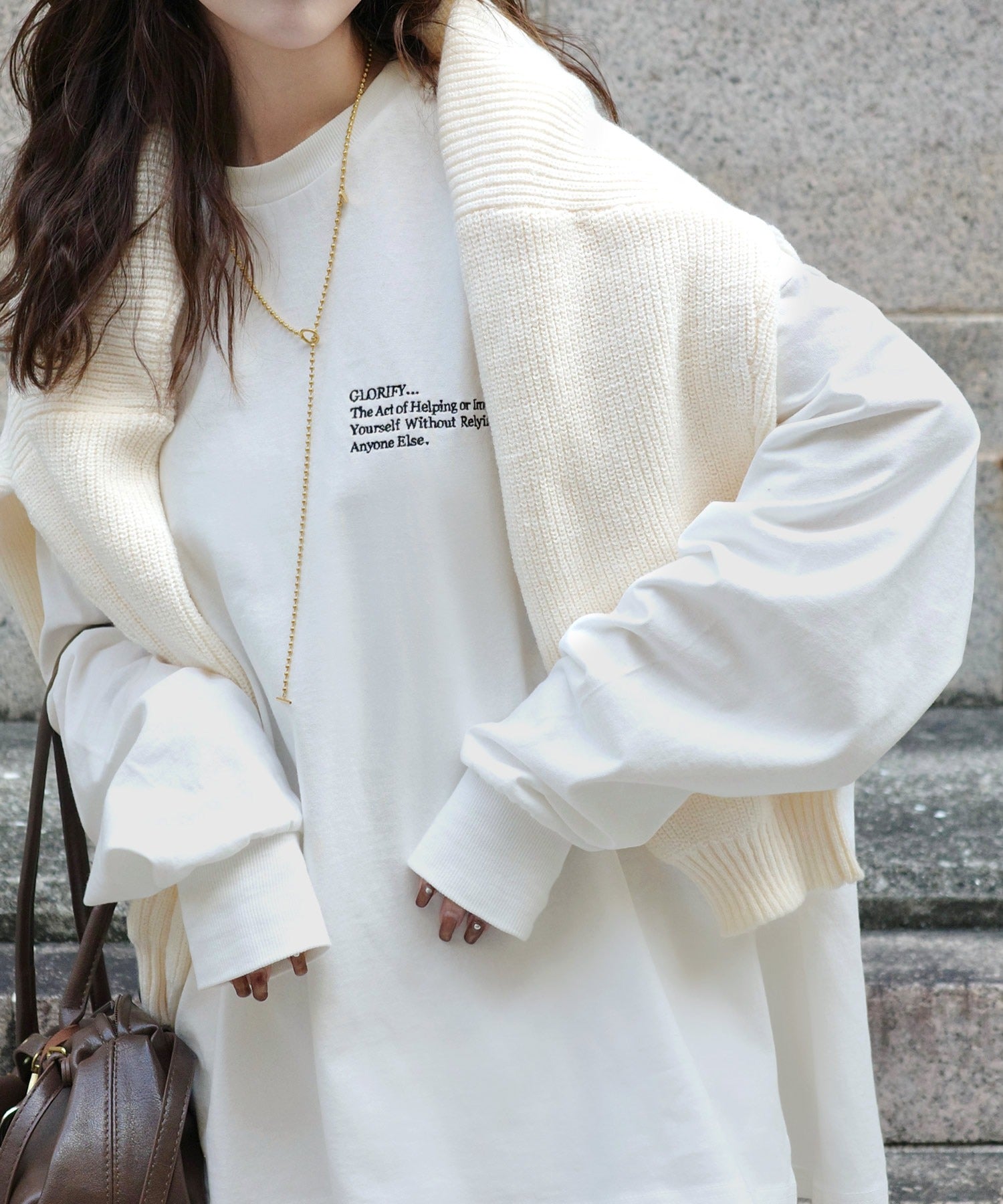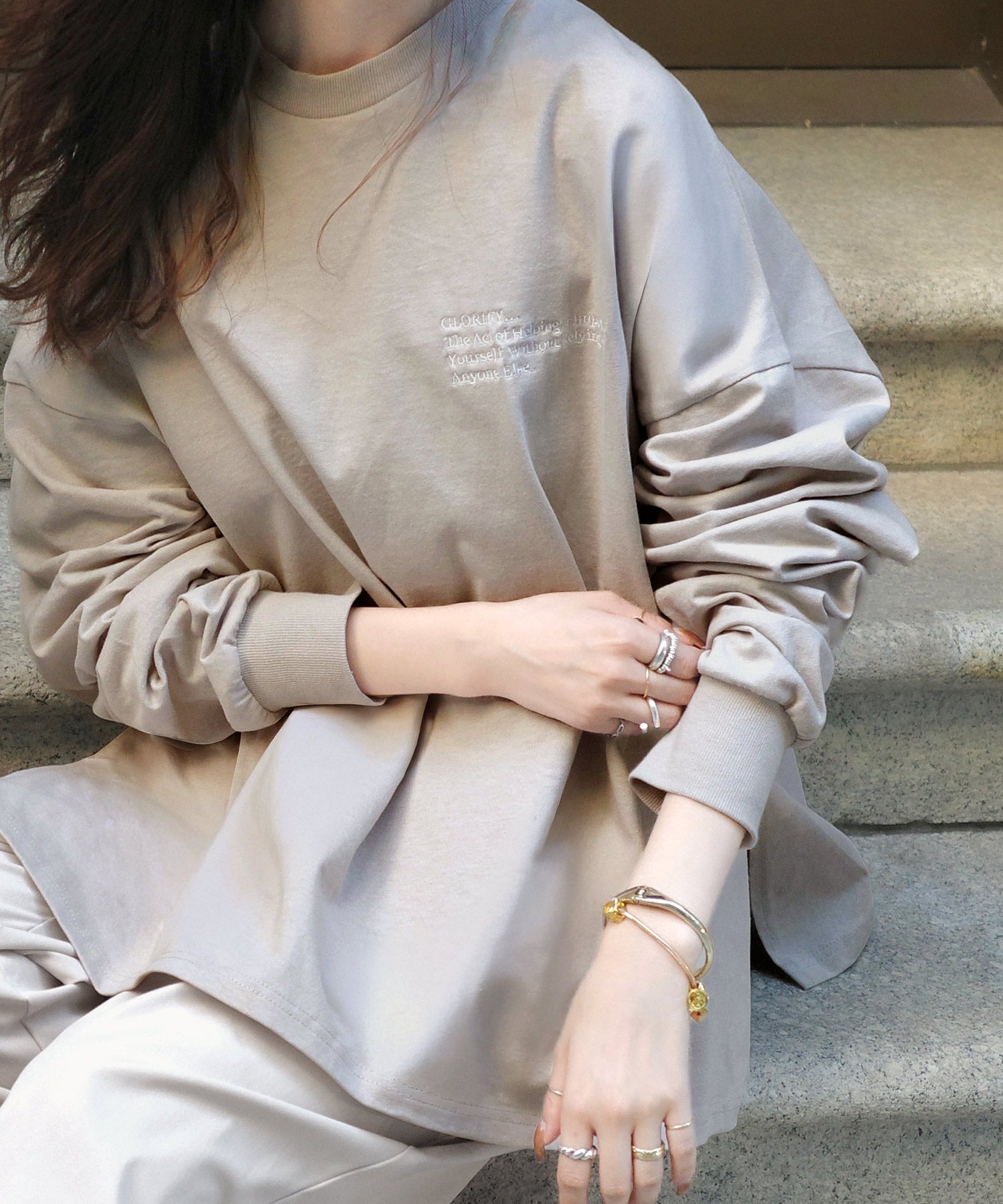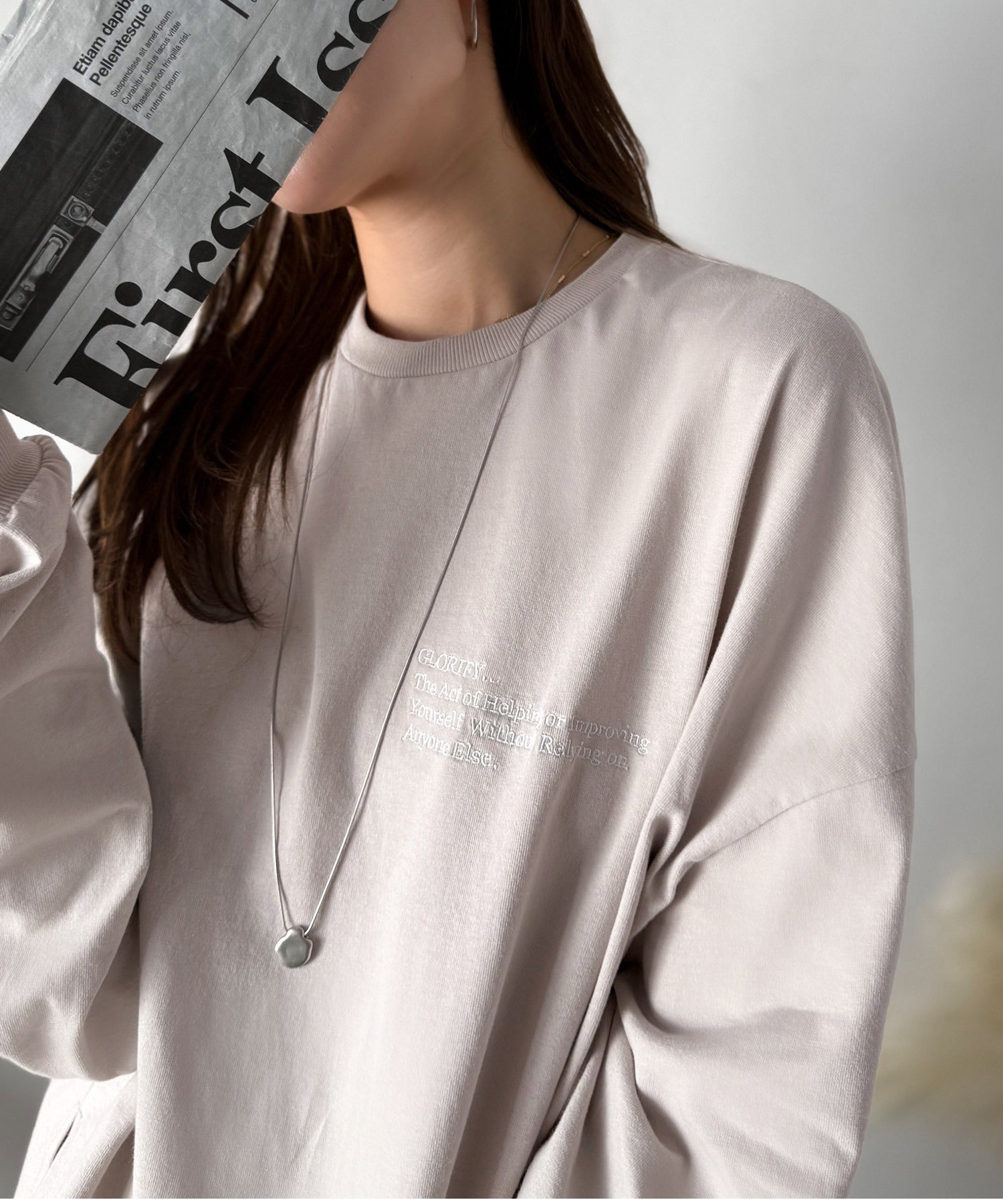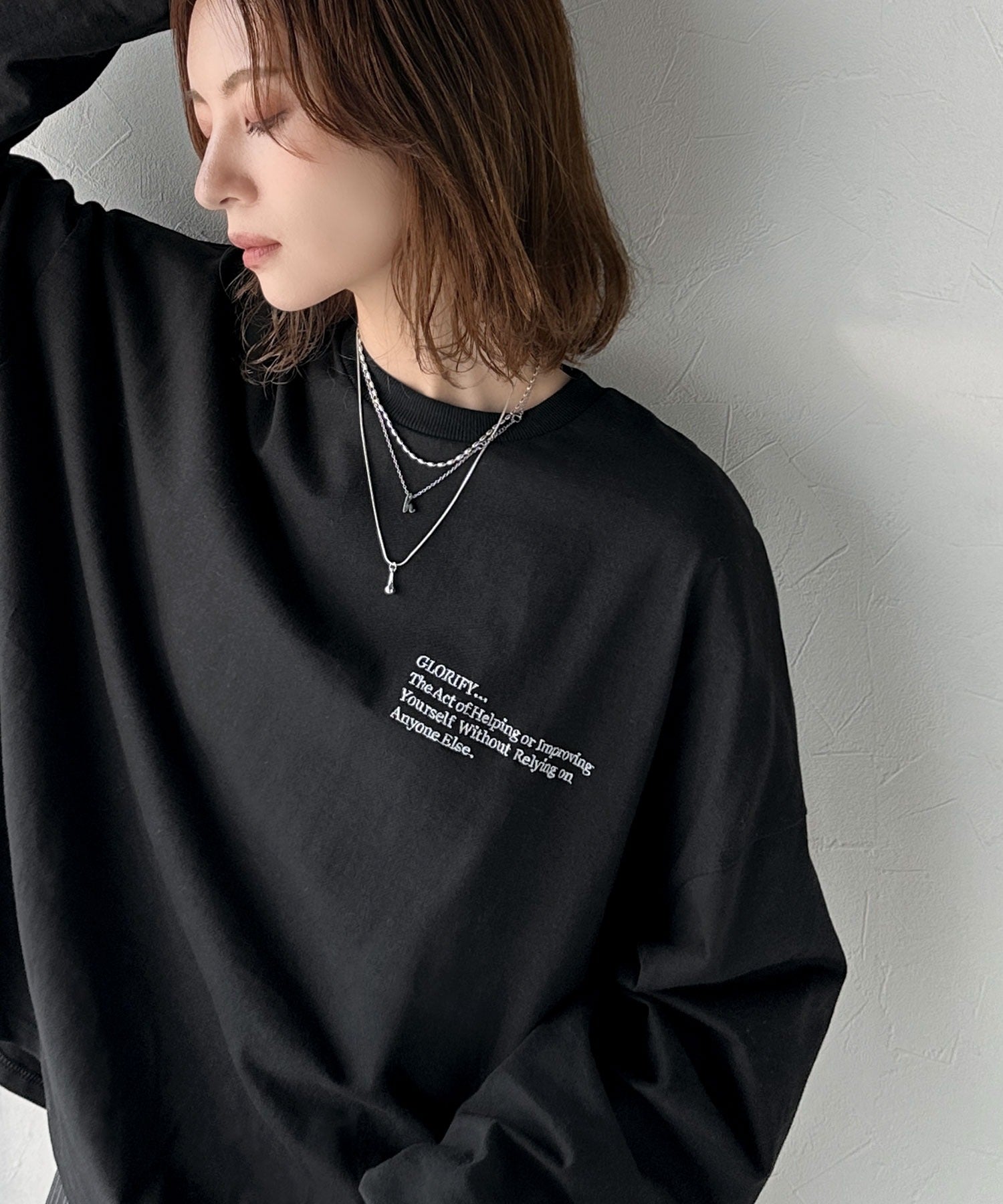 《marina×クラシカルエルフコラボ》ベーシックに今っぽバランスの“余裕”をプラス。綿100%胸刺繍入りロンT ce1010510