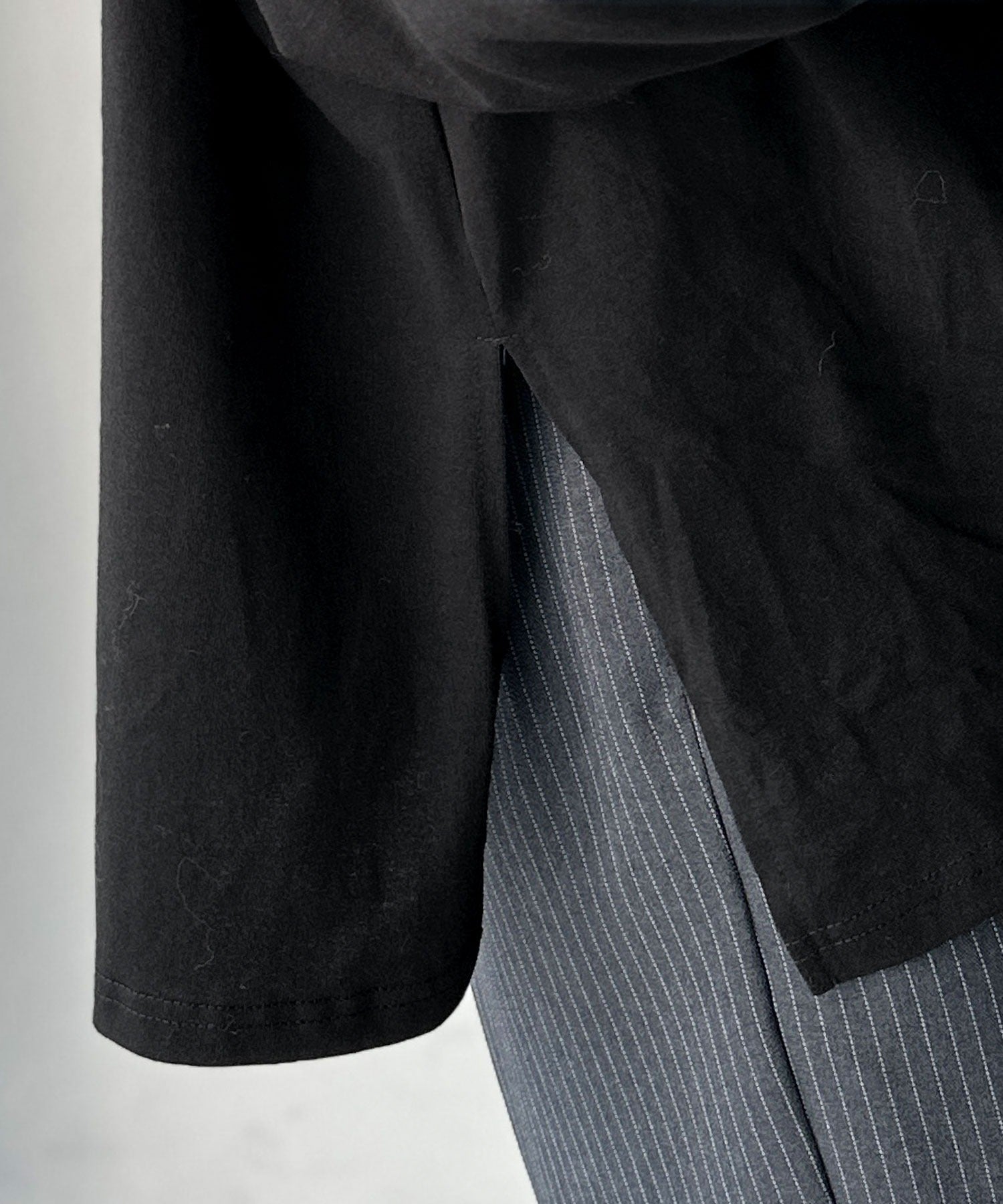 サイドにはスリットを入れているので、前だけ軽くタックインしてもバランス良く決まり◎。