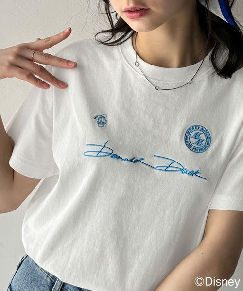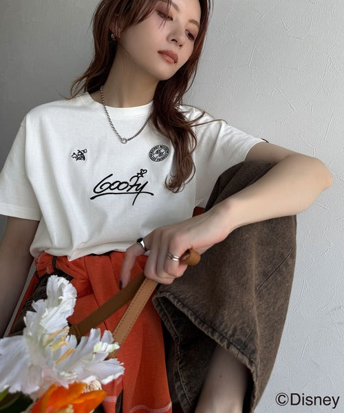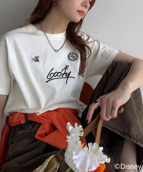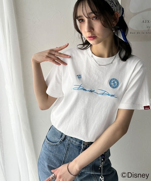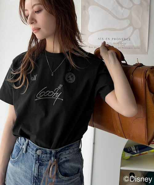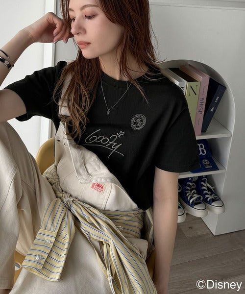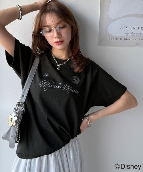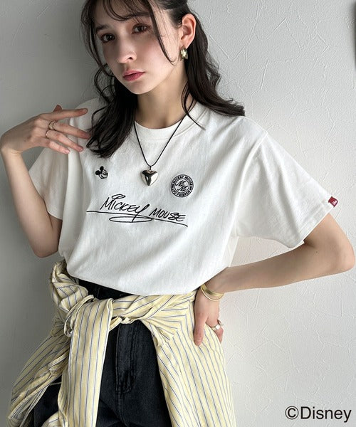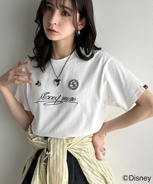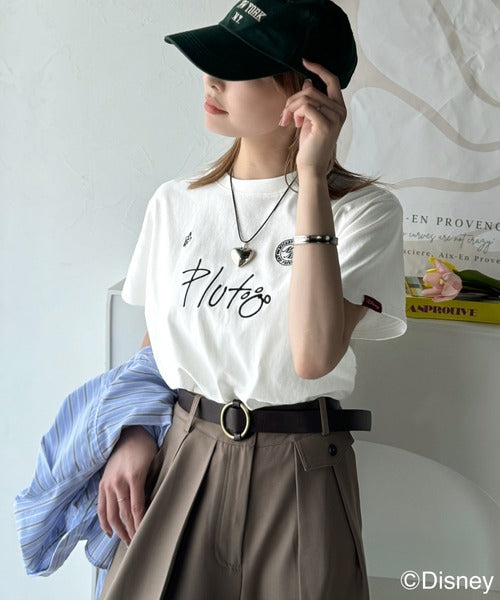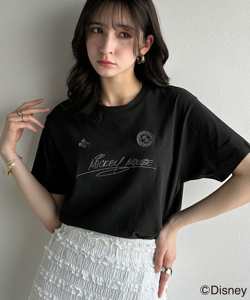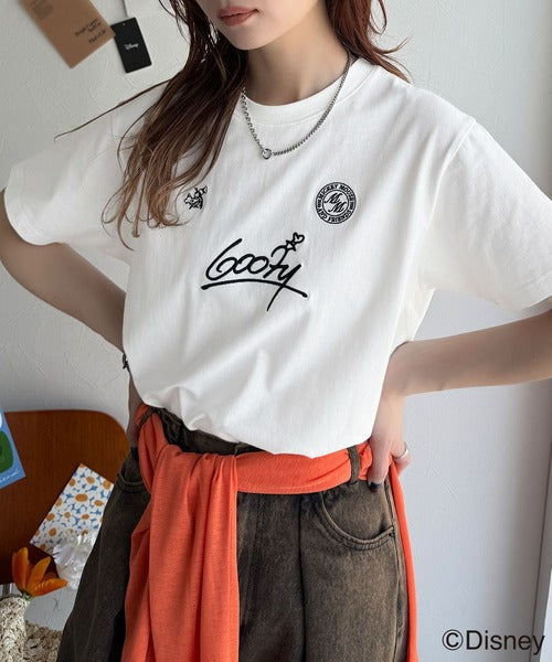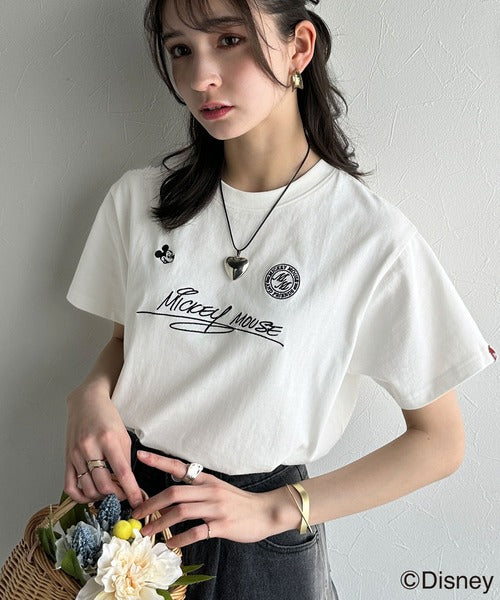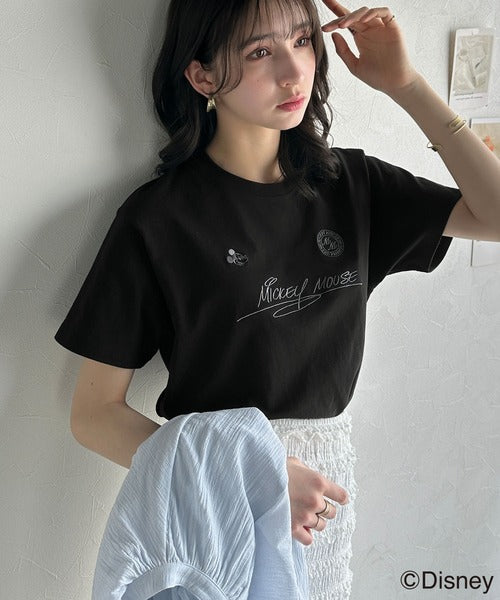 大人女子必見! 綿100%「ディズニー」サイン風刺繍Tシャツ(半袖) ce1330037