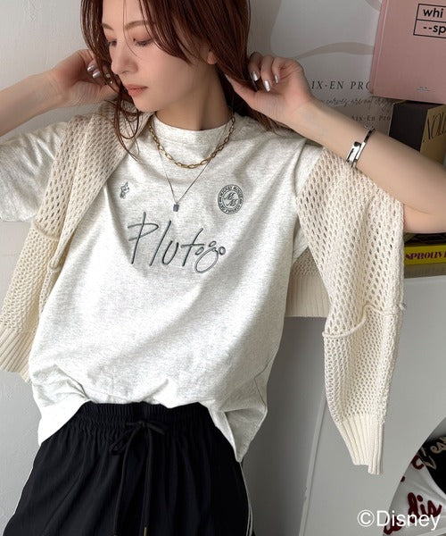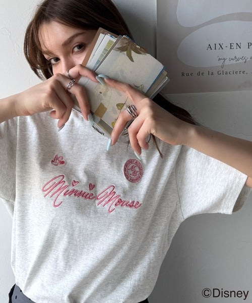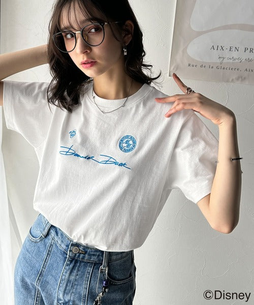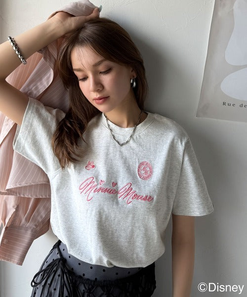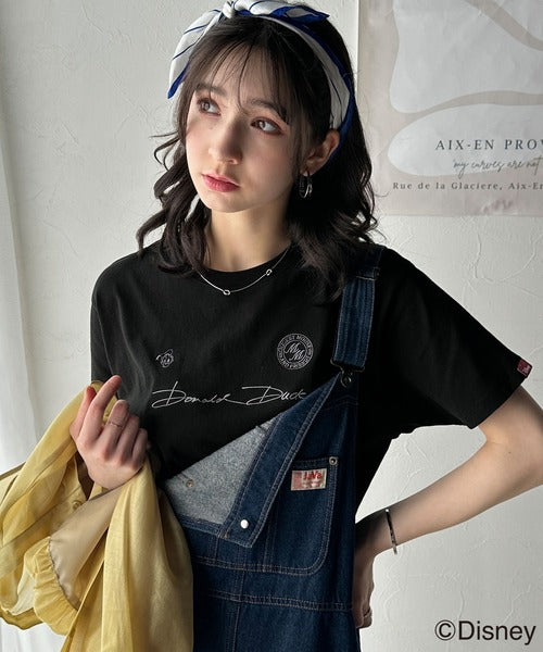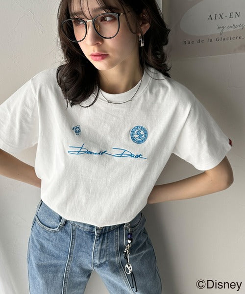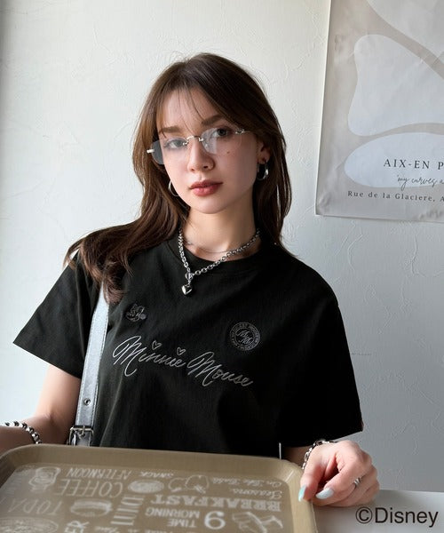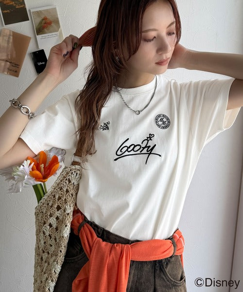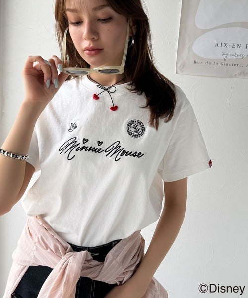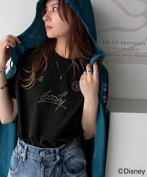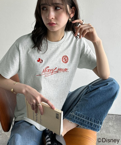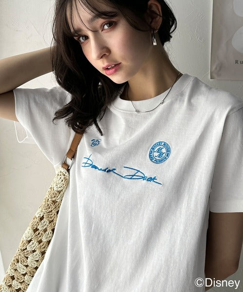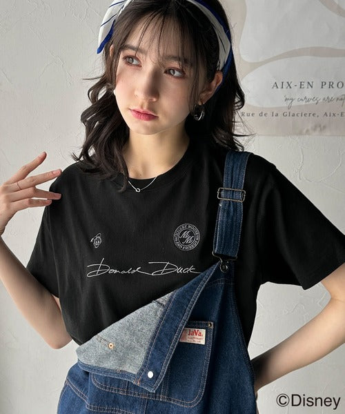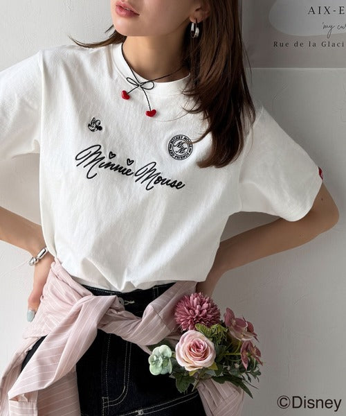 大人女子必見! 綿100%「ディズニー」サイン風刺繍Tシャツ(半袖) ce1330037