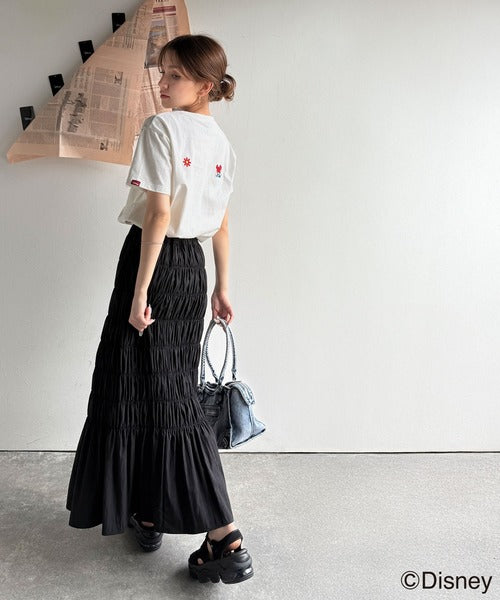 カジュアルから甘めまで、着回し自在の万能ディズニーキャラクタープリントTシャツ。