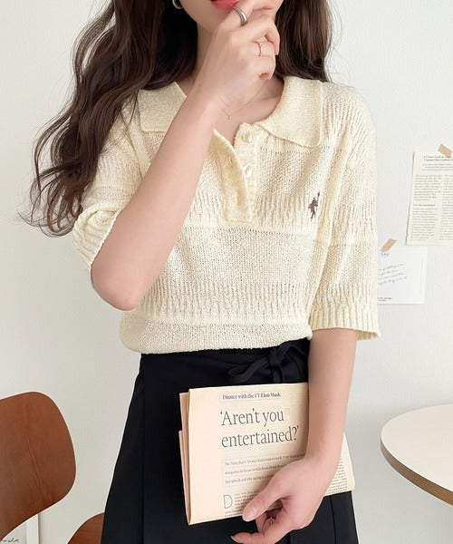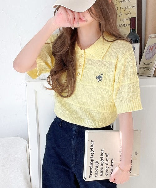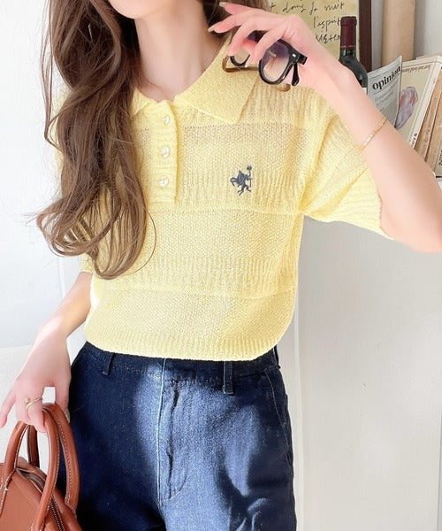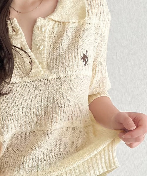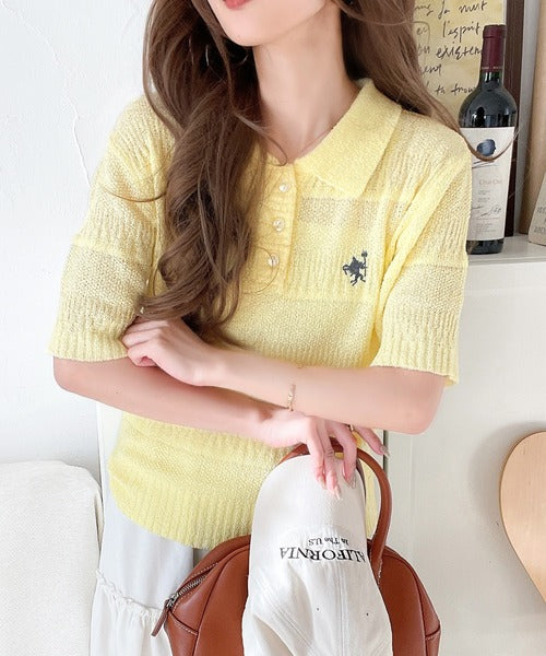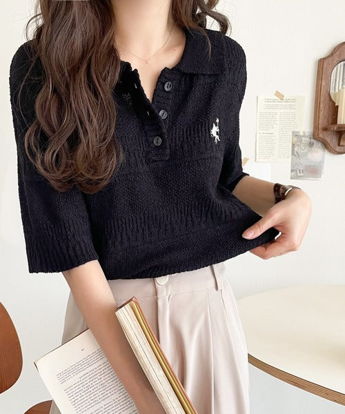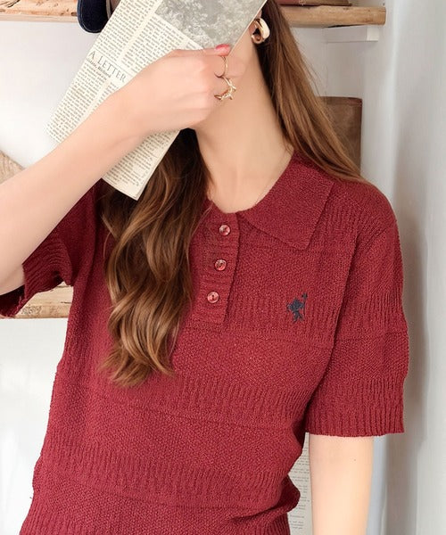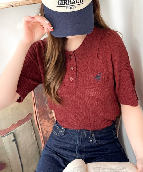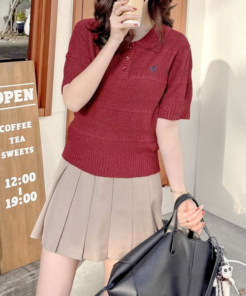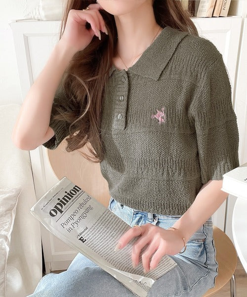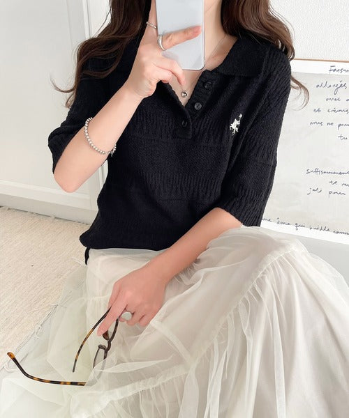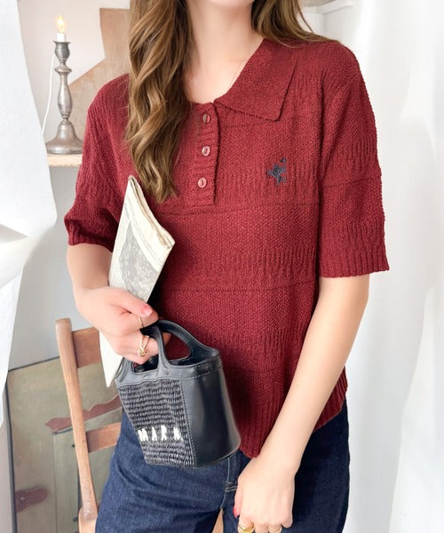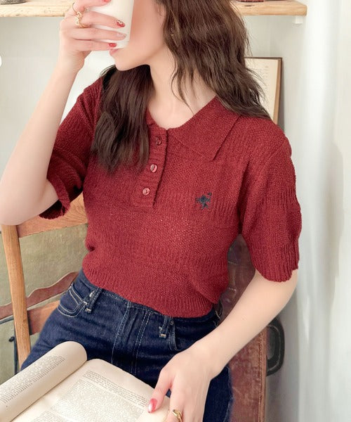 カジュアルコーデを格上げする。ワンポイント刺繍ブークレポロニットトップス(半袖) ce1260392