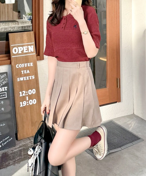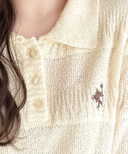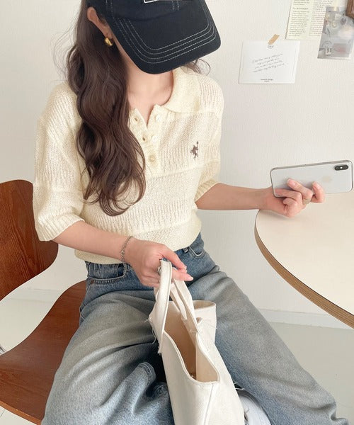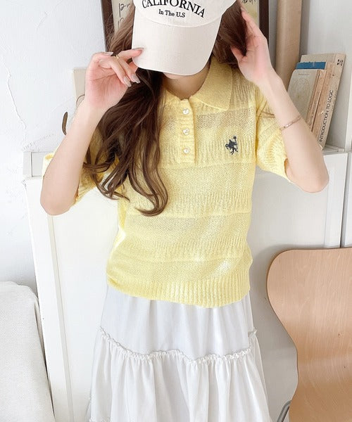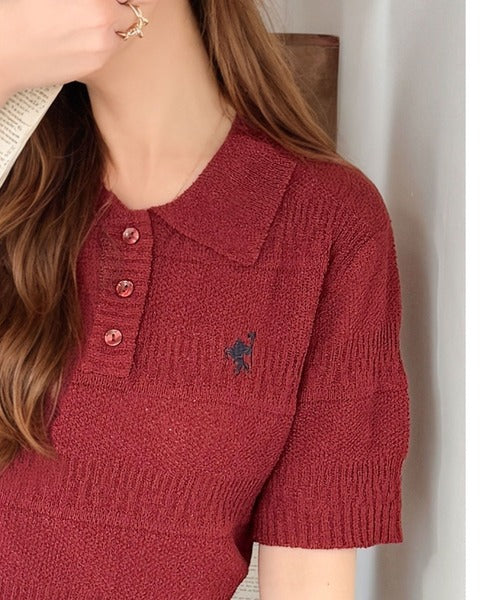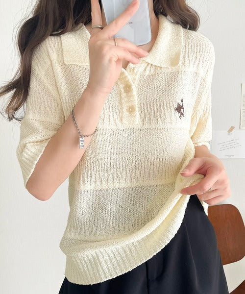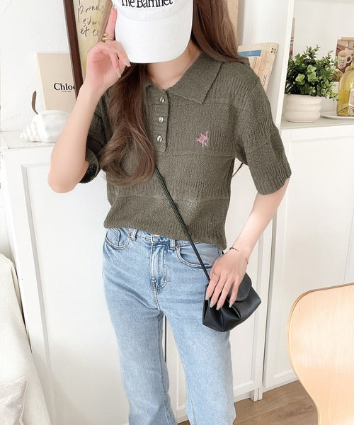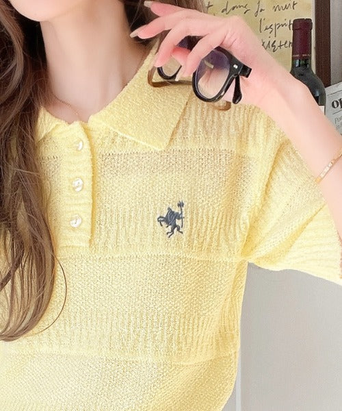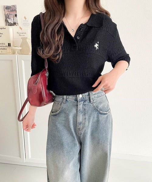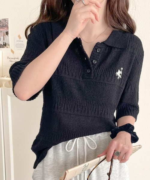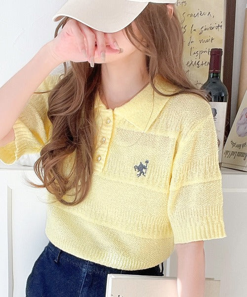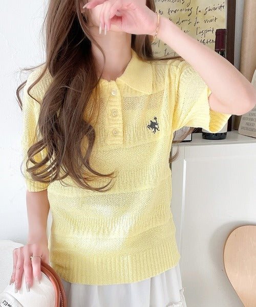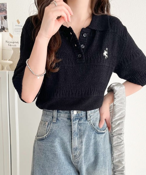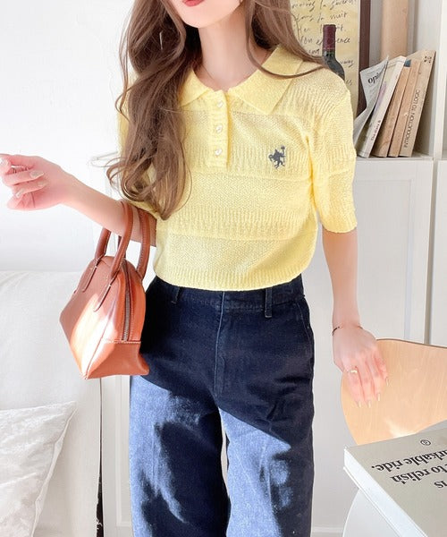 カジュアルコーデを格上げする。ワンポイント刺繍ブークレポロニットトップス(半袖) ce1260392