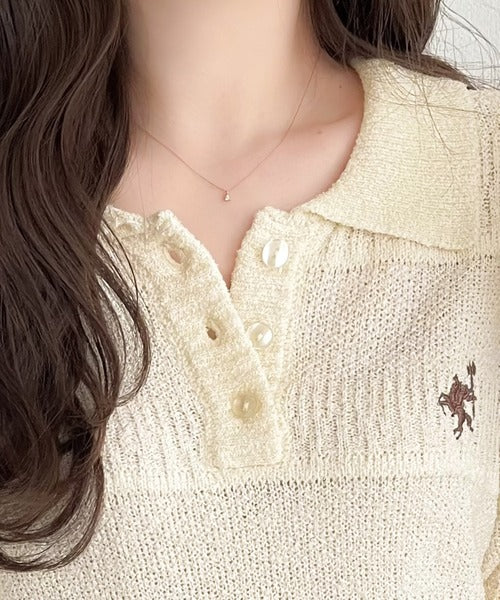 上品な胸元の刺繍が魅力のブークレポロニットです。