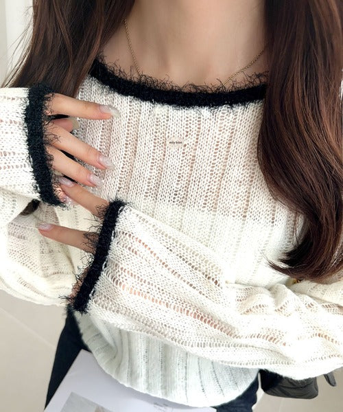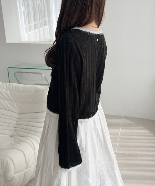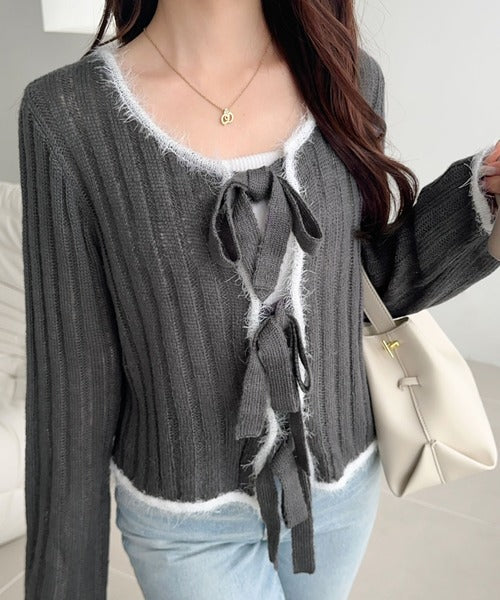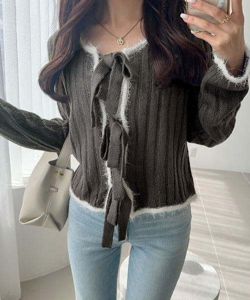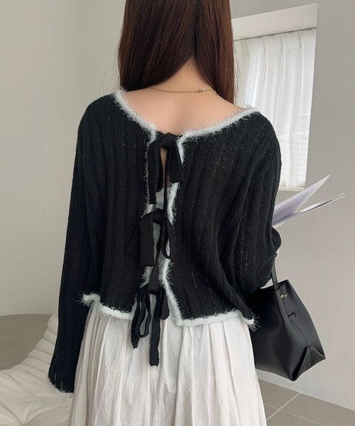 【mily bilet】ふわっとガーリー。透かし編みフェザー配色前後2WAYリボンカーディガン mi1029120