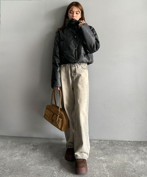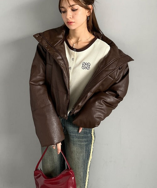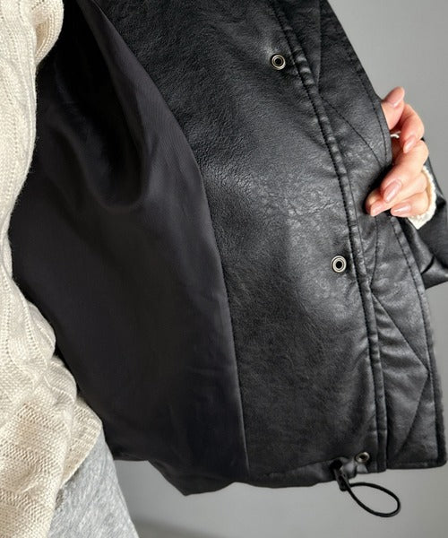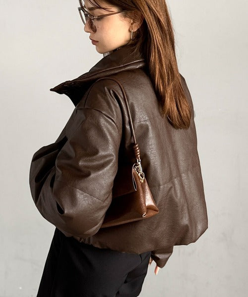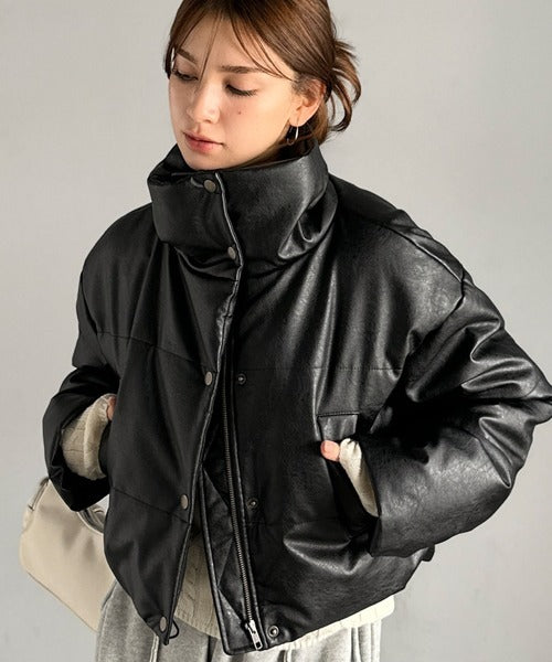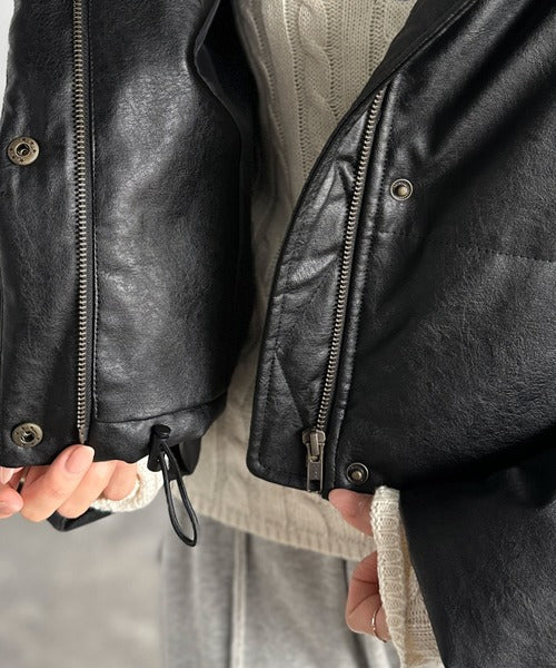 【mily bilet】ショート丈でスタイルアップ◎ ヴィンテージライクレザークロップド中綿コート mi1269013