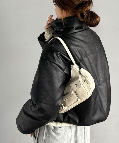 【素材】 表地:合成皮革 裏地:ポリエステル100% 中綿:ポリエステル100%