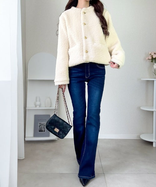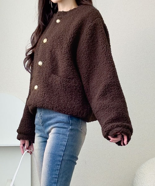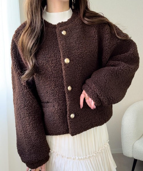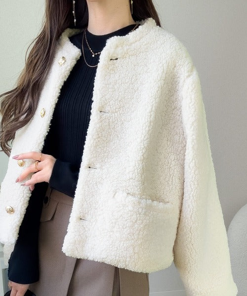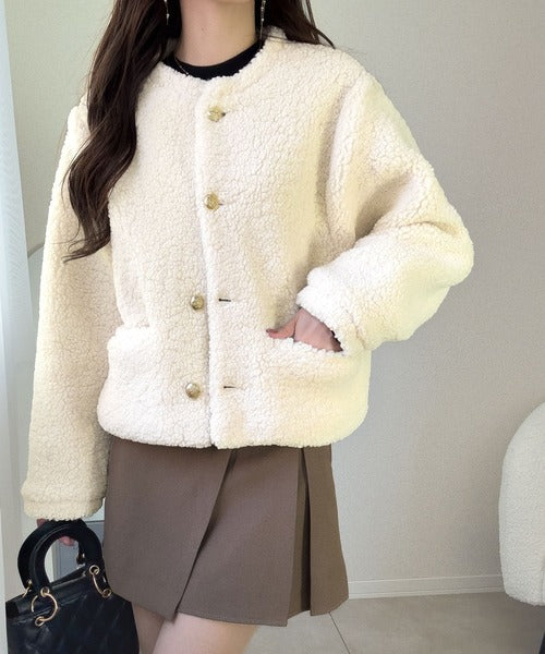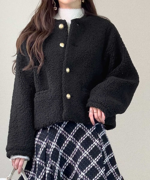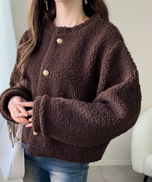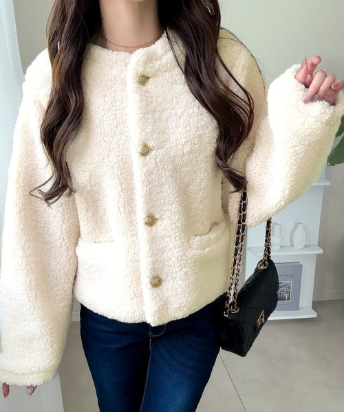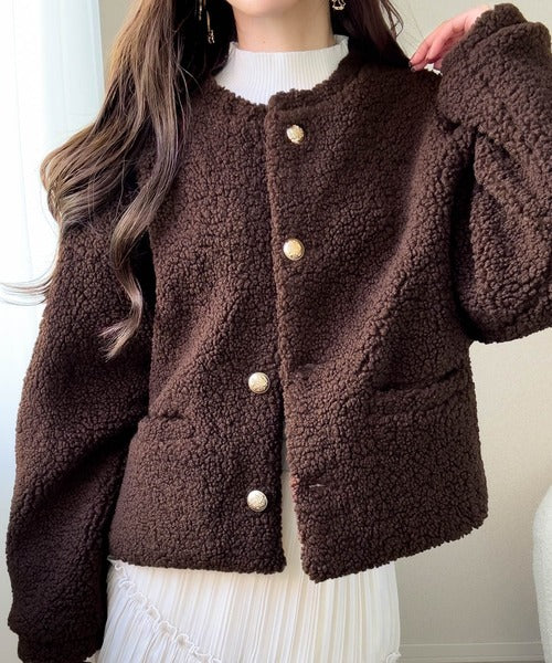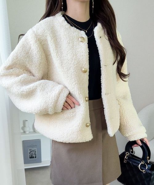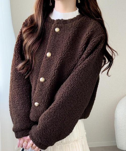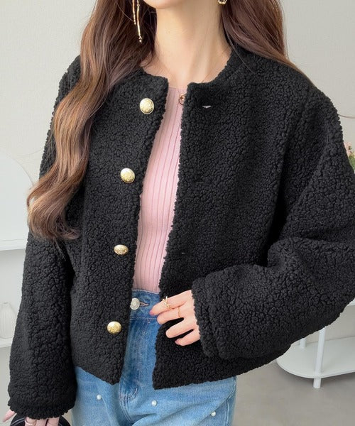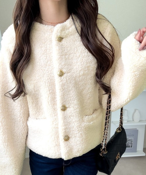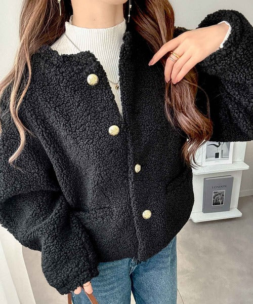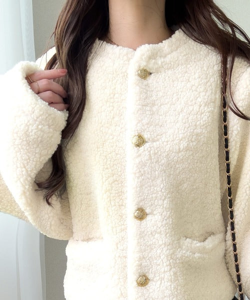 【mily bilet】リッチ感漂うゴールド釦×ふんわりボアで、羽織るだけで華やかに。エンブレムボタン使いボアジャケット mi1329051