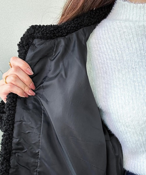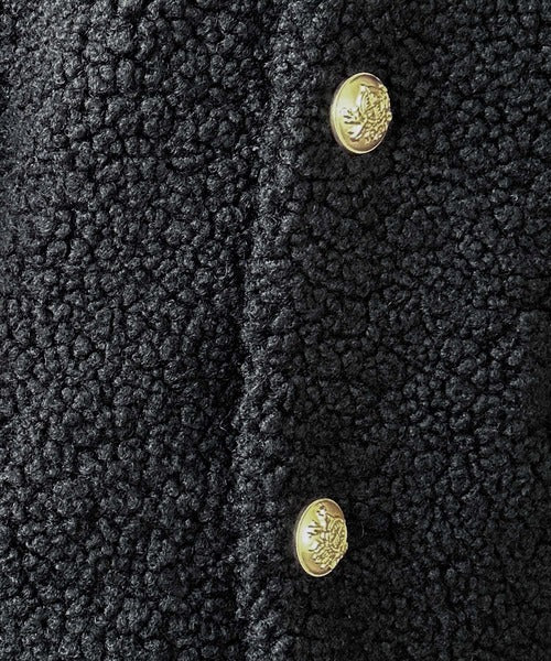 ゴールドのエンブレム釦がリッチに映える、ボリュームボアジャケット。