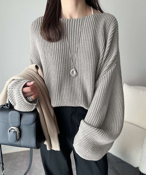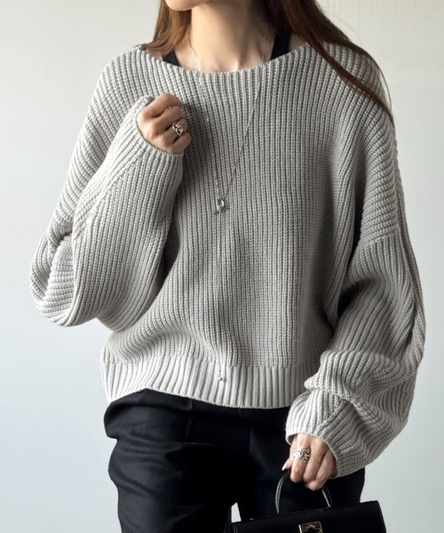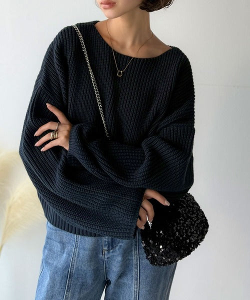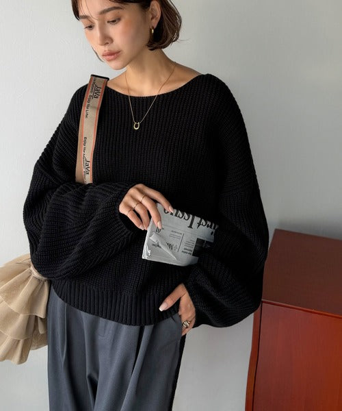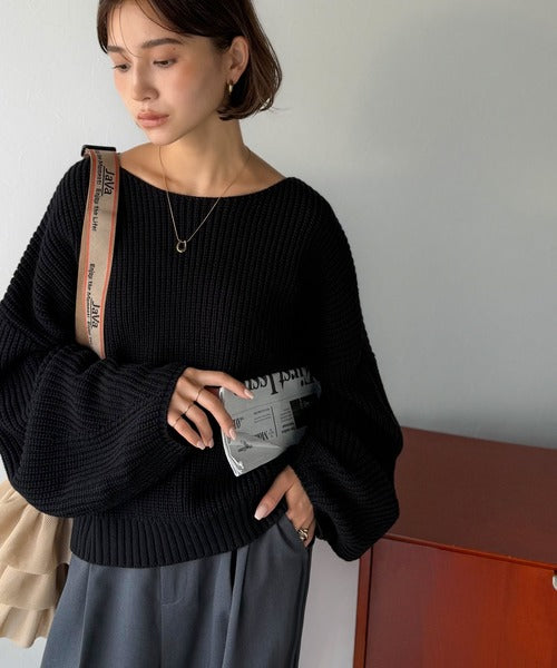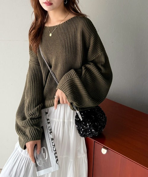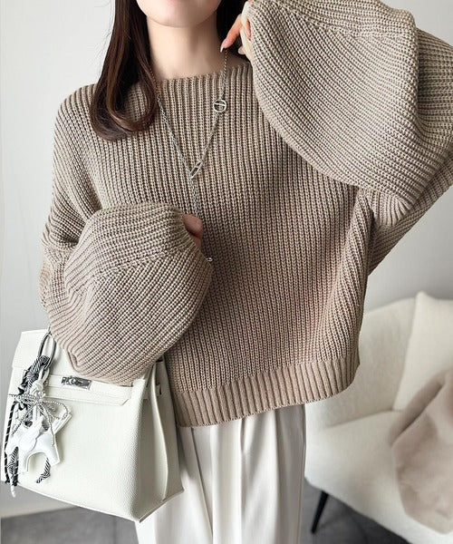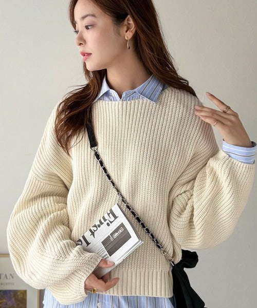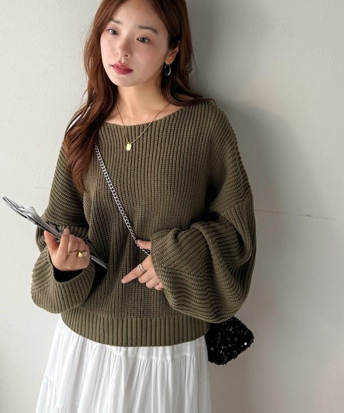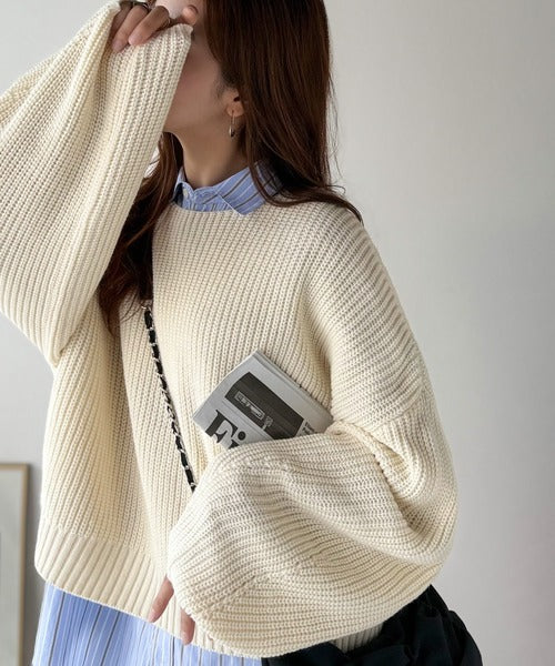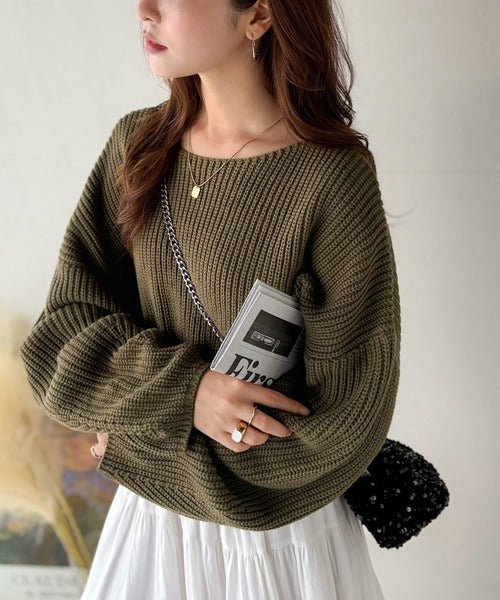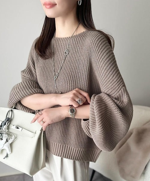 立体感のあるコクーンスリーブが印象的な畦編みニット。