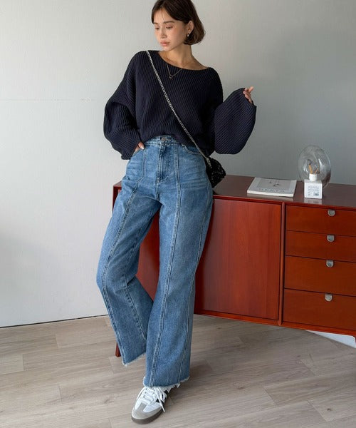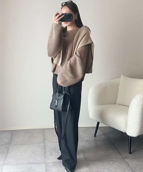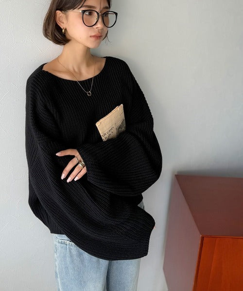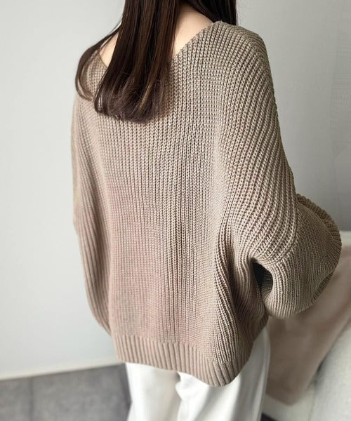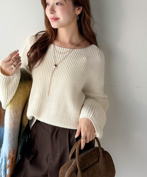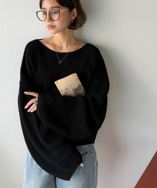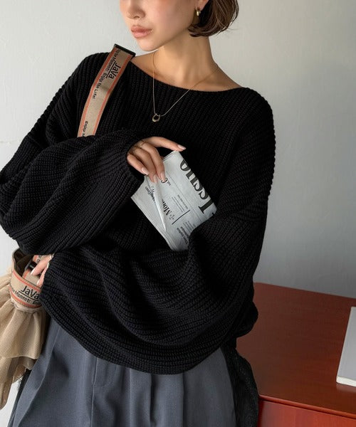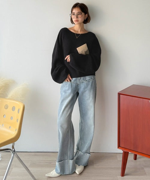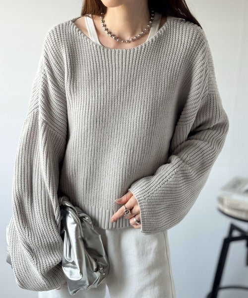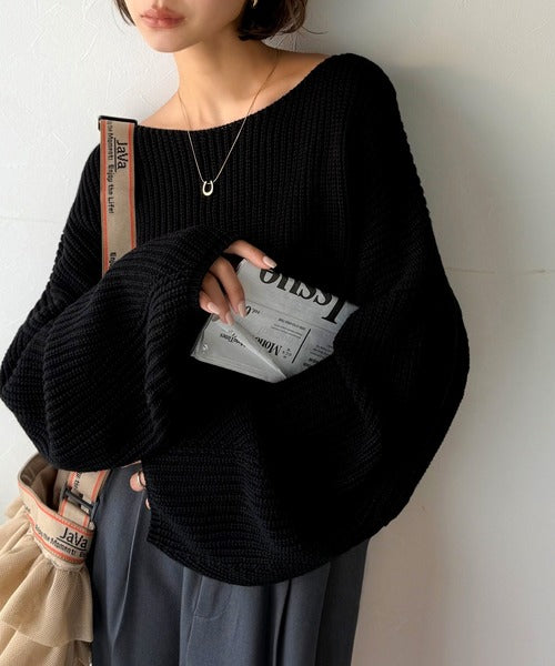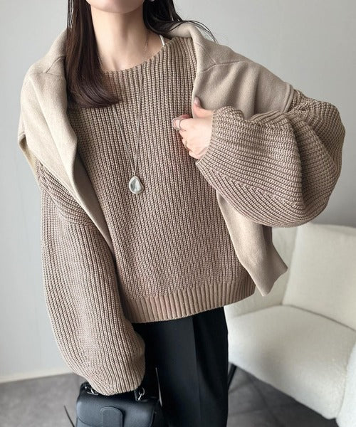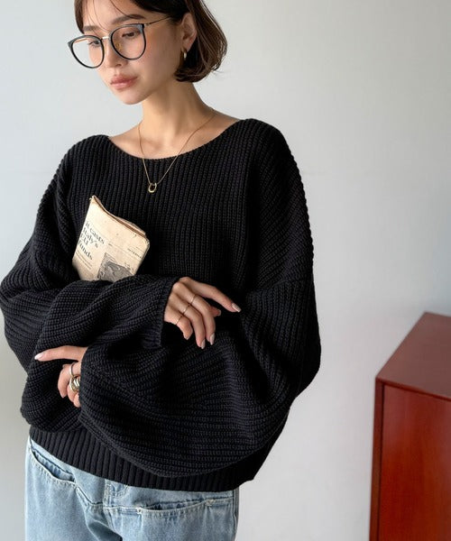 立体感のあるコクーンスリーブが印象的な畦編みニット。