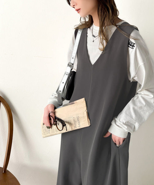 ストンとしたシルエットで華奢魅せのオールインワン。