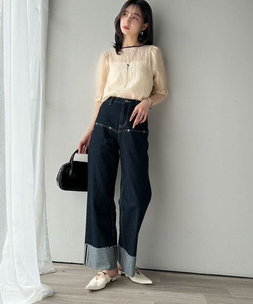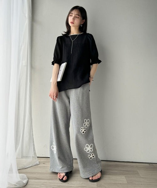 シンプルなボトムと合わせても、ぐっと華やかさをプラス。