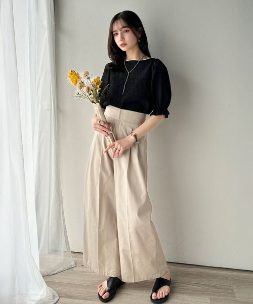 また、バルーンフリルスリーブが袖口を華やかに飾り、動くたびに軽やかな印象に。