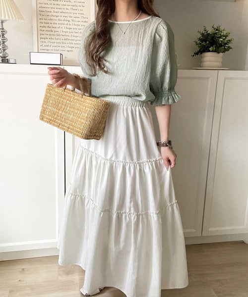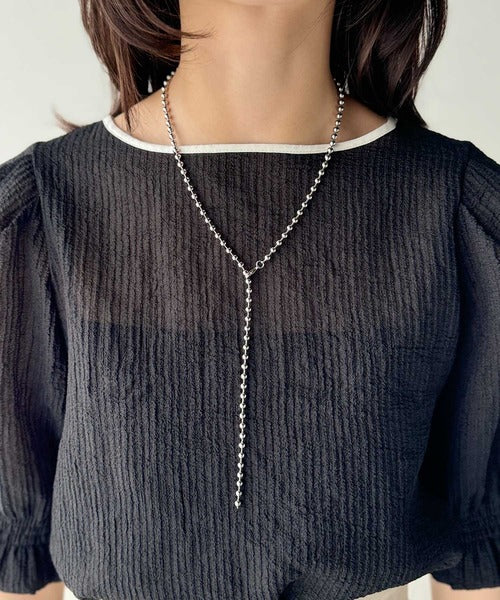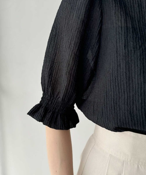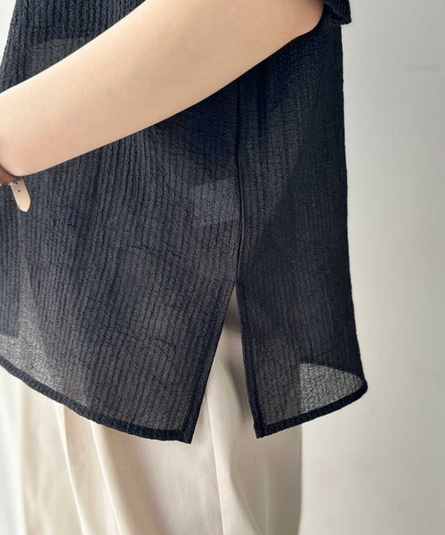 シアー楊柳素材を使用し、軽やかで涼しげな着心地を叶えたこのブラウスは、