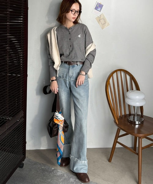 ゆるっとヘンリーネックで肩周りも窮屈感なく、着心地抜群です◎