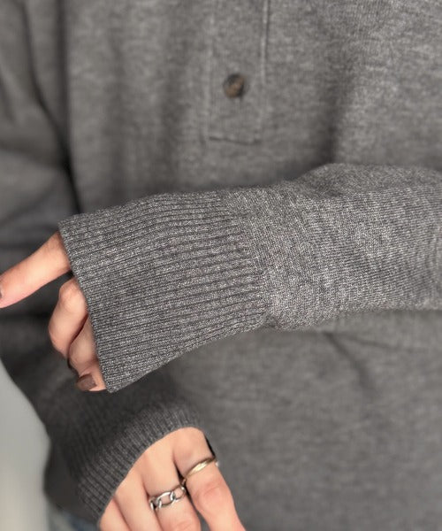 首元をすっきり魅せつつ、程よくラフな印象のヘンリーネックデザイン。