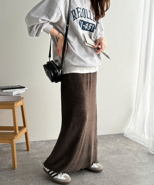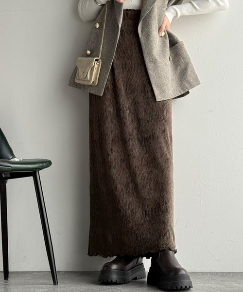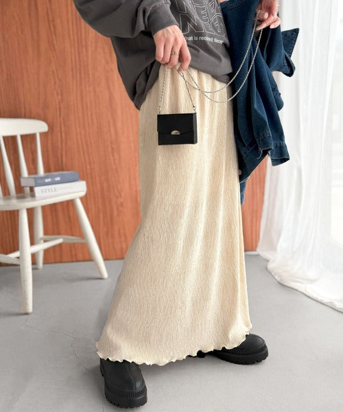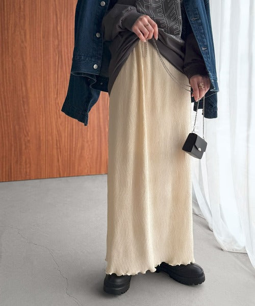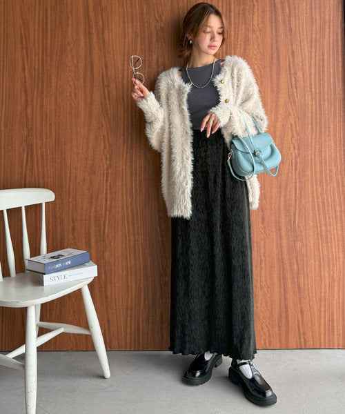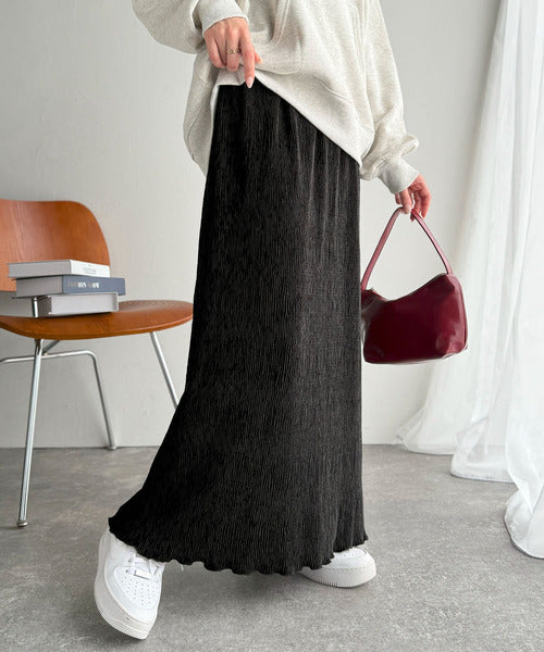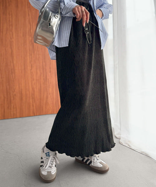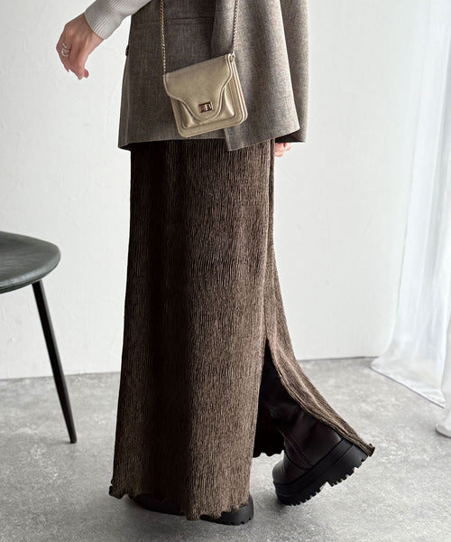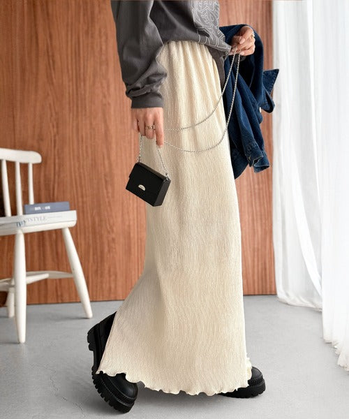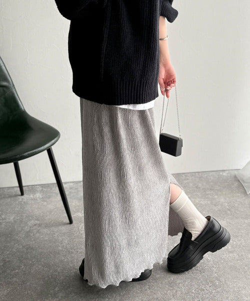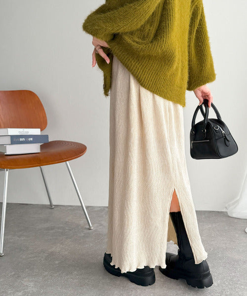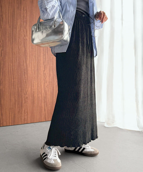 季節を問わず楽しめる高級感あふれるプリーツスカート。