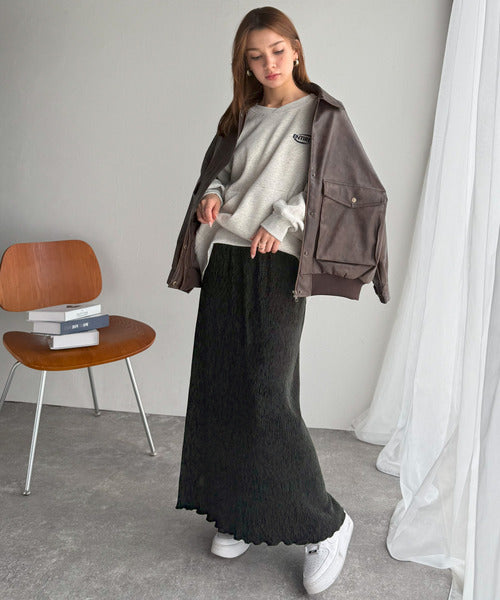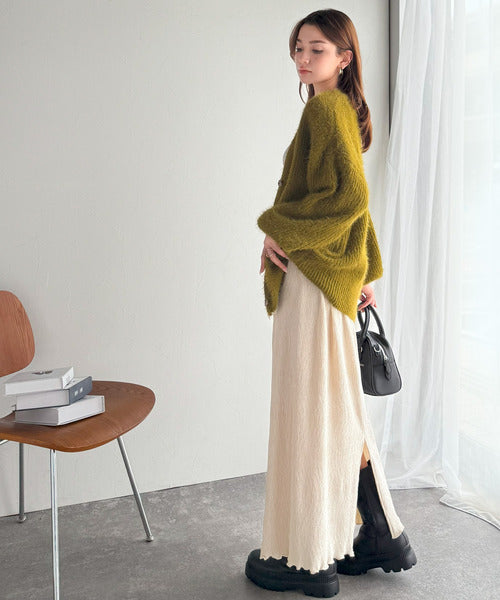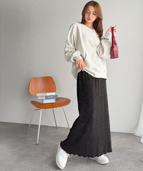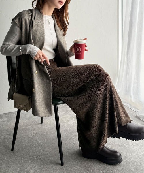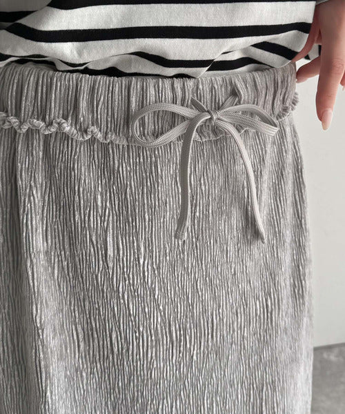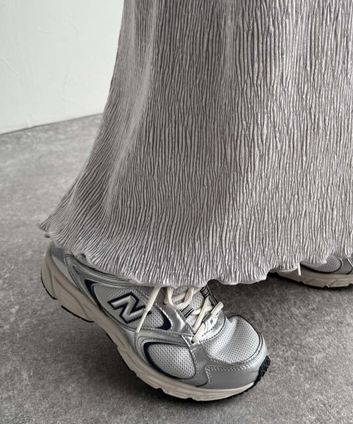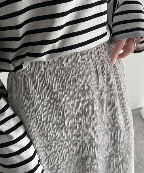 ・ランダムなプリーツ加工を施した光沢感のあるリラックス素材