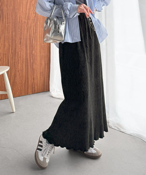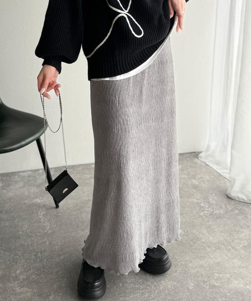 微光沢素材が叶える大人の余裕。ウエスト2wayふんわり楊柳プリーツスカート(ロング丈) ce1020289